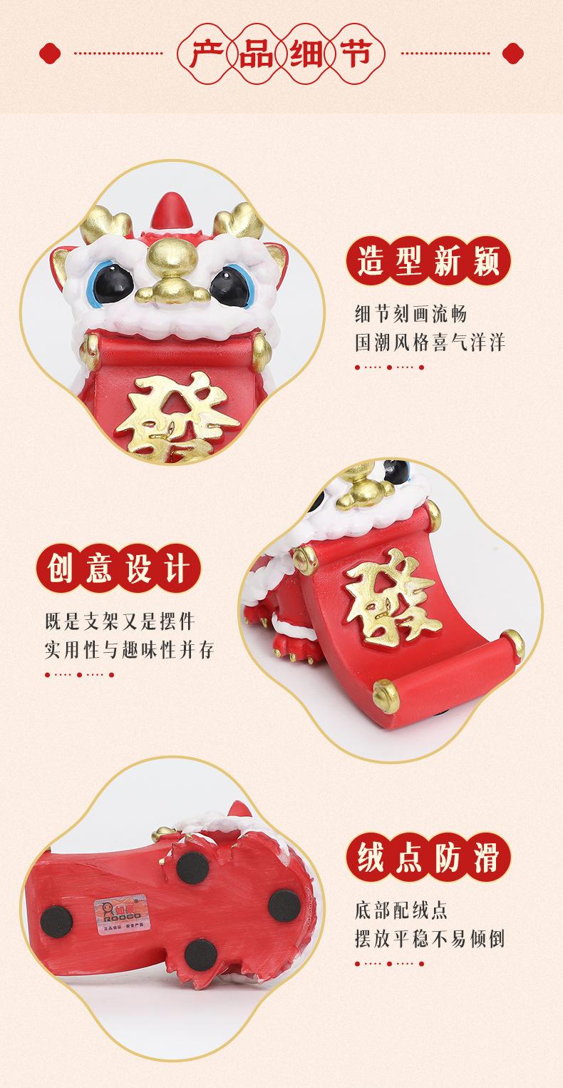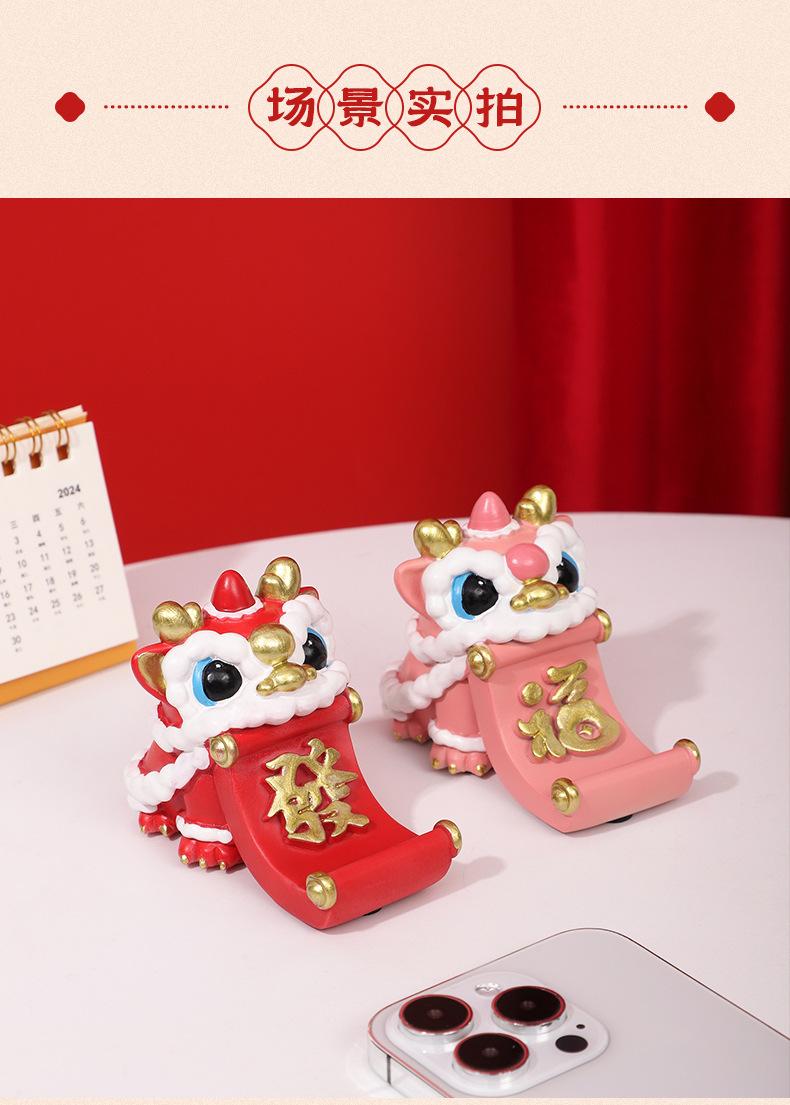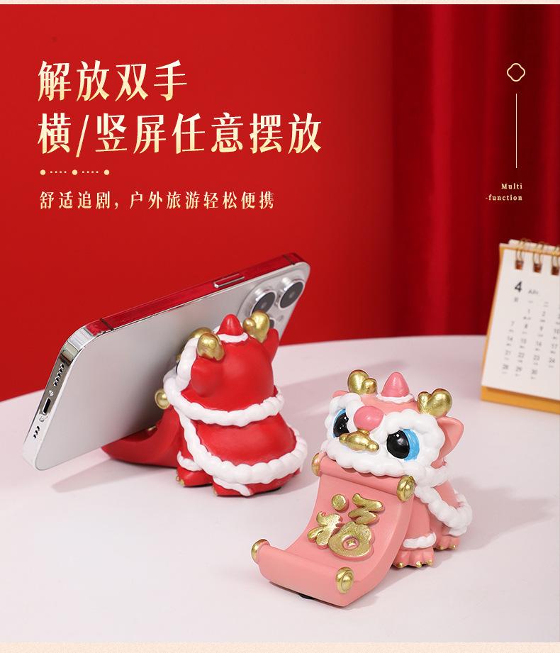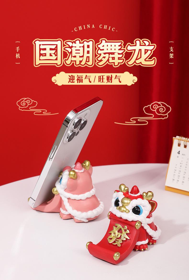 Adorno decorativo de escritorio festivo de estilo chino, regalo creativo de moda nacional, danza del león, soporte para teléfono móvil de resina con diseño de dragón