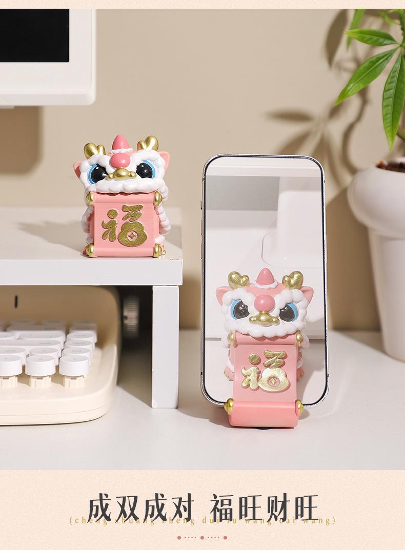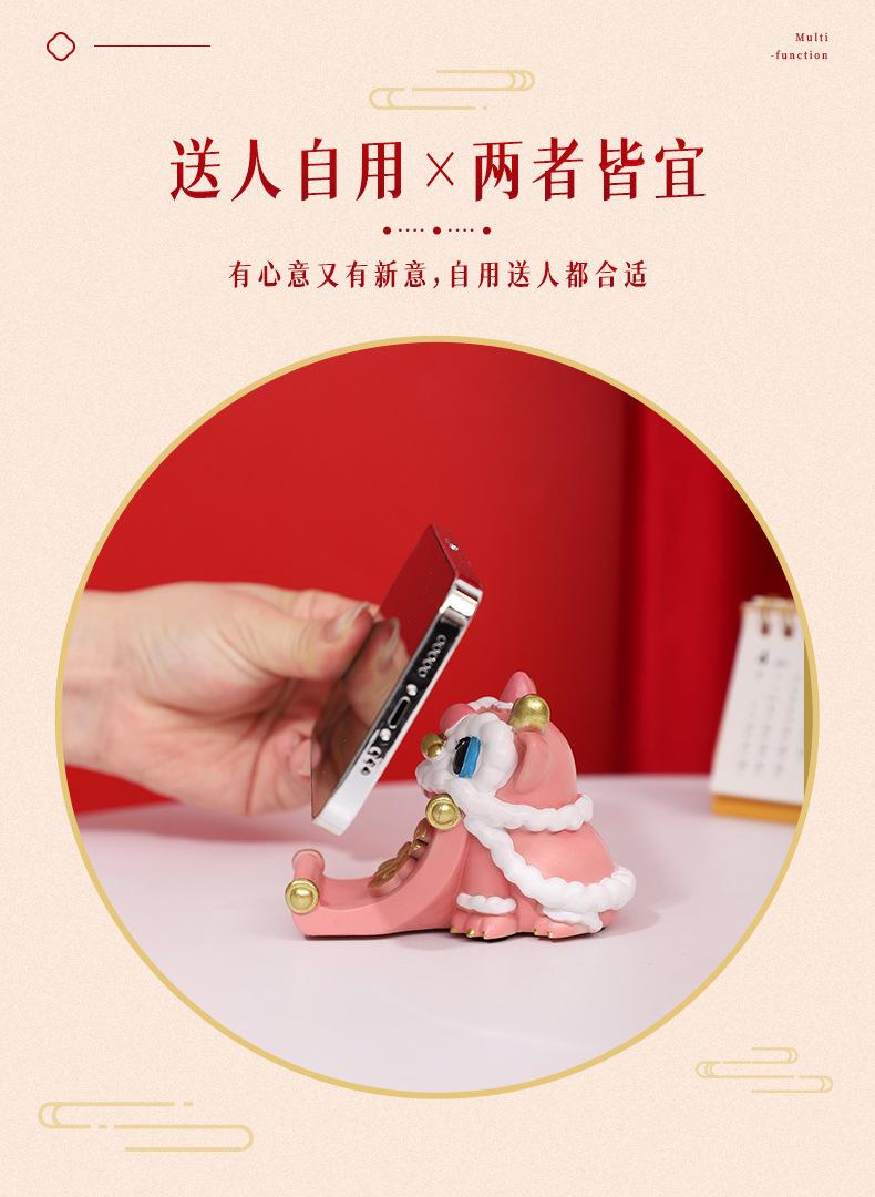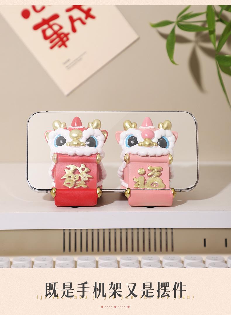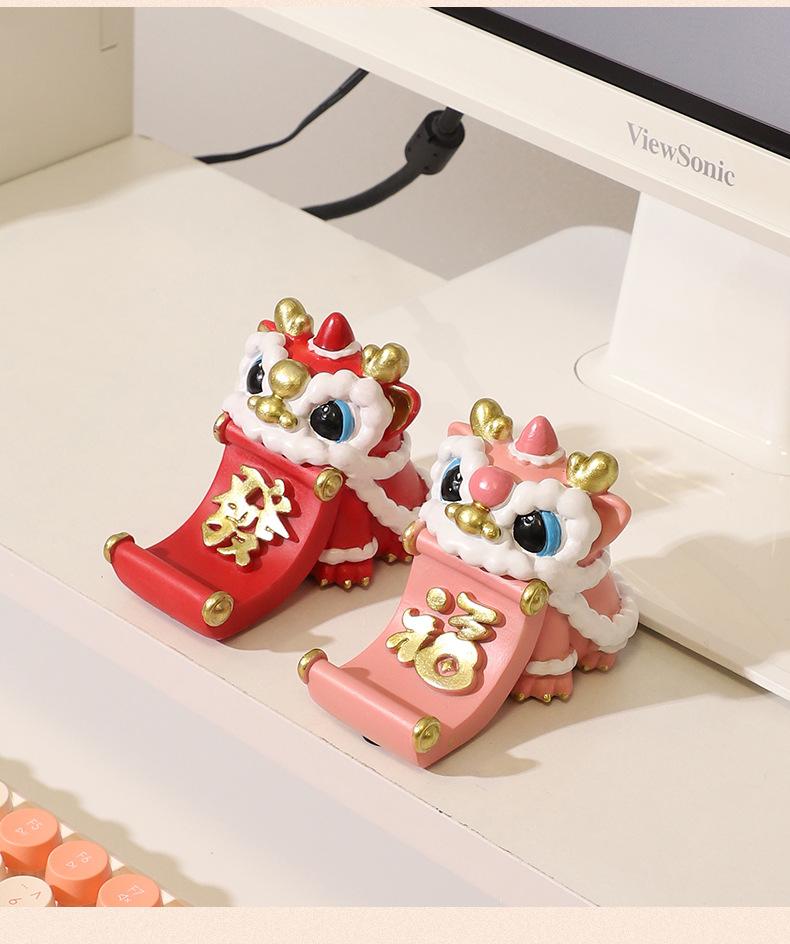 Adorno decorativo de escritorio festivo de estilo chino, regalo creativo de moda nacional, danza del león, soporte para teléfono móvil de resina con diseño de dragón