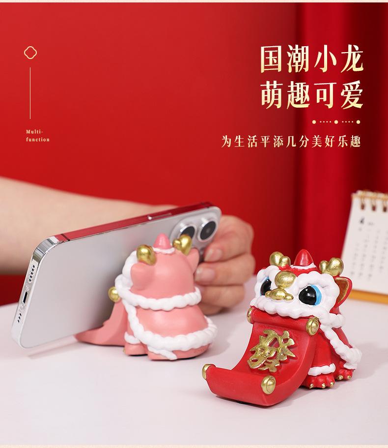 Compra Adorno decorativo de escritorio festivo de estilo chino, regalo creativo de moda nacional, danza del león, soporte para teléfono móvil de resina con diseño de dragón al por mayor en Joom.pro