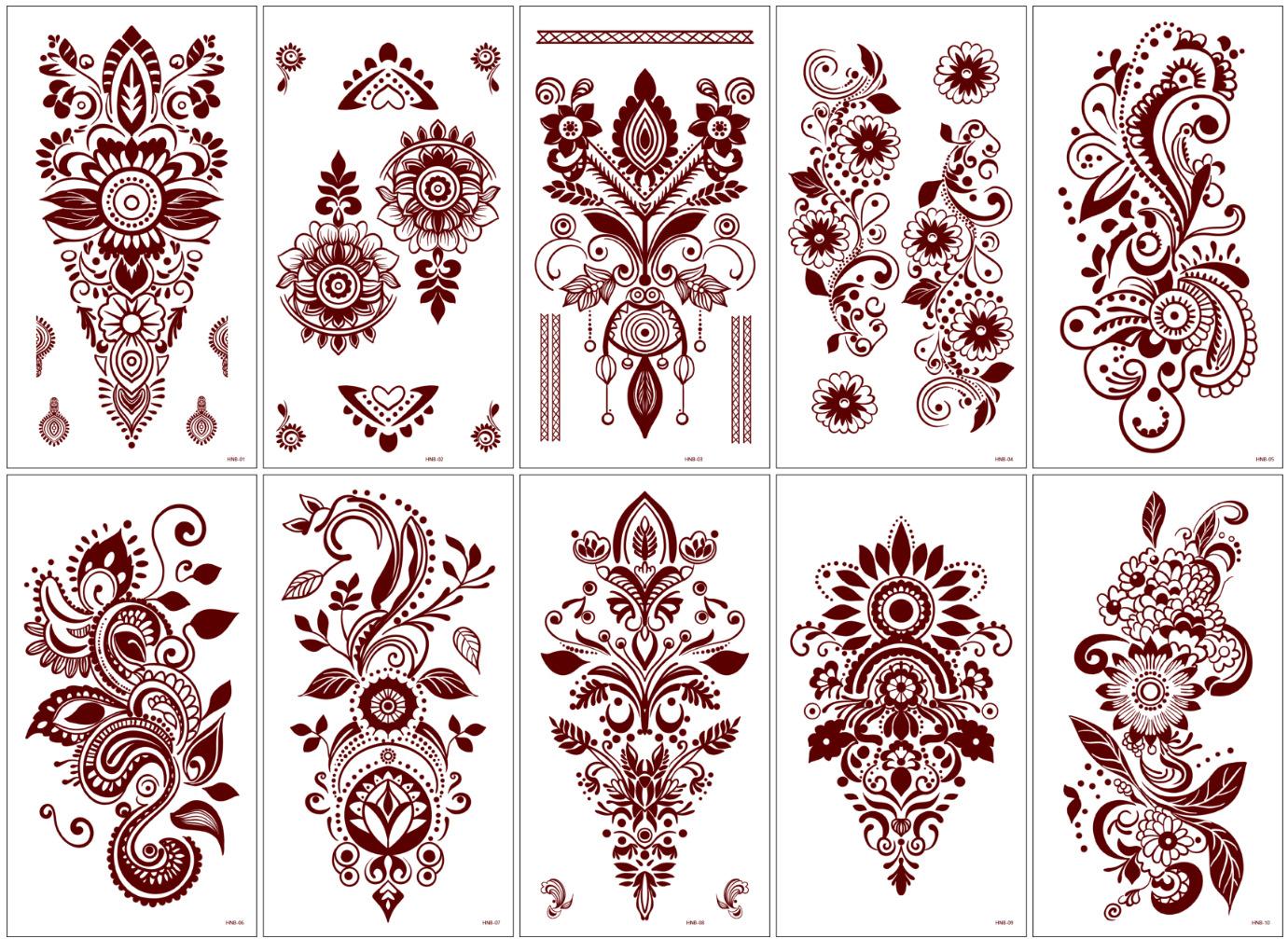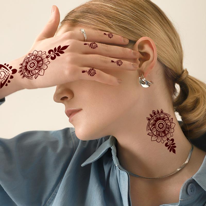 Nuevo tatuaje de henna transfronterizo, adhesivo temporal de alta calidad con encaje marrón para mano y espalda, para mujer