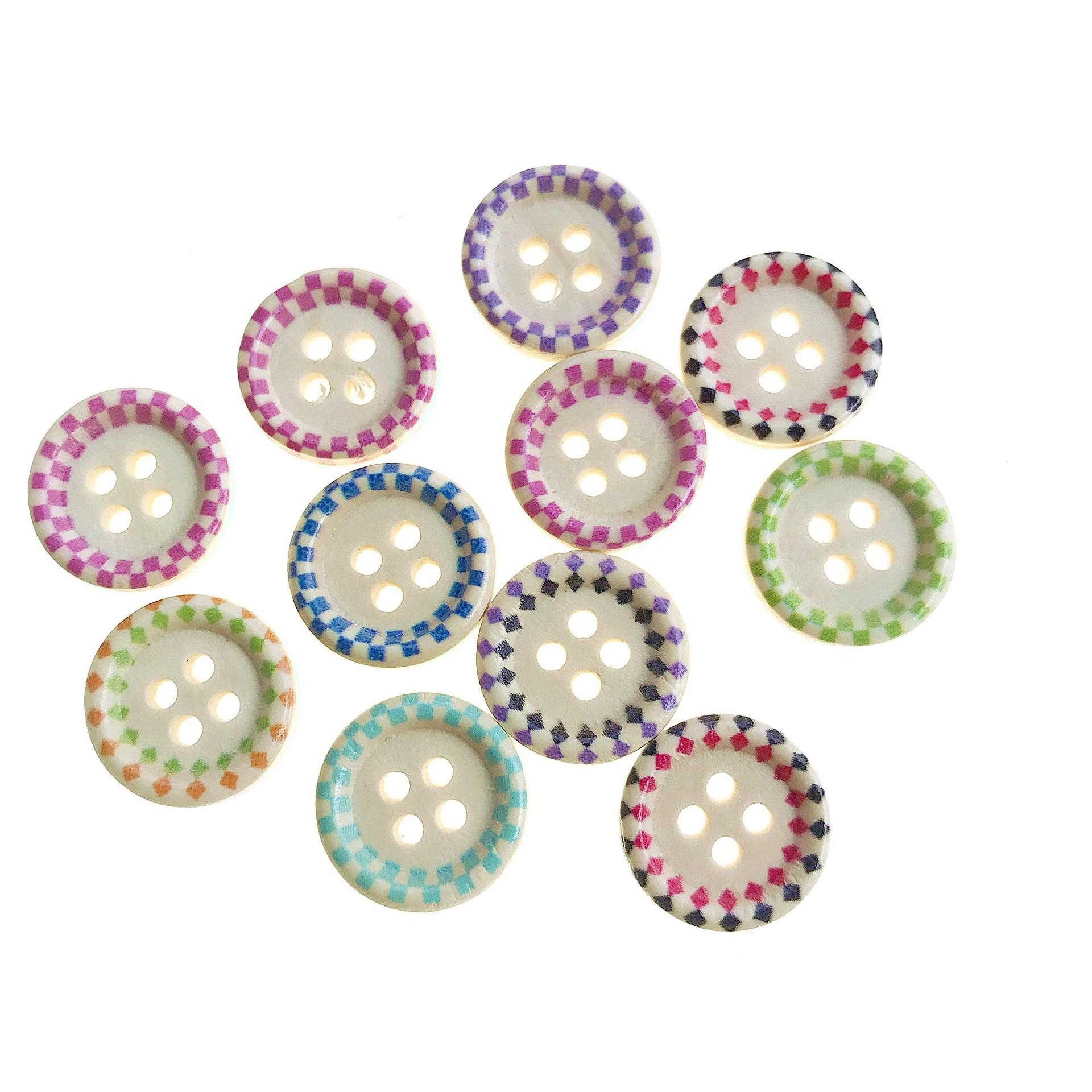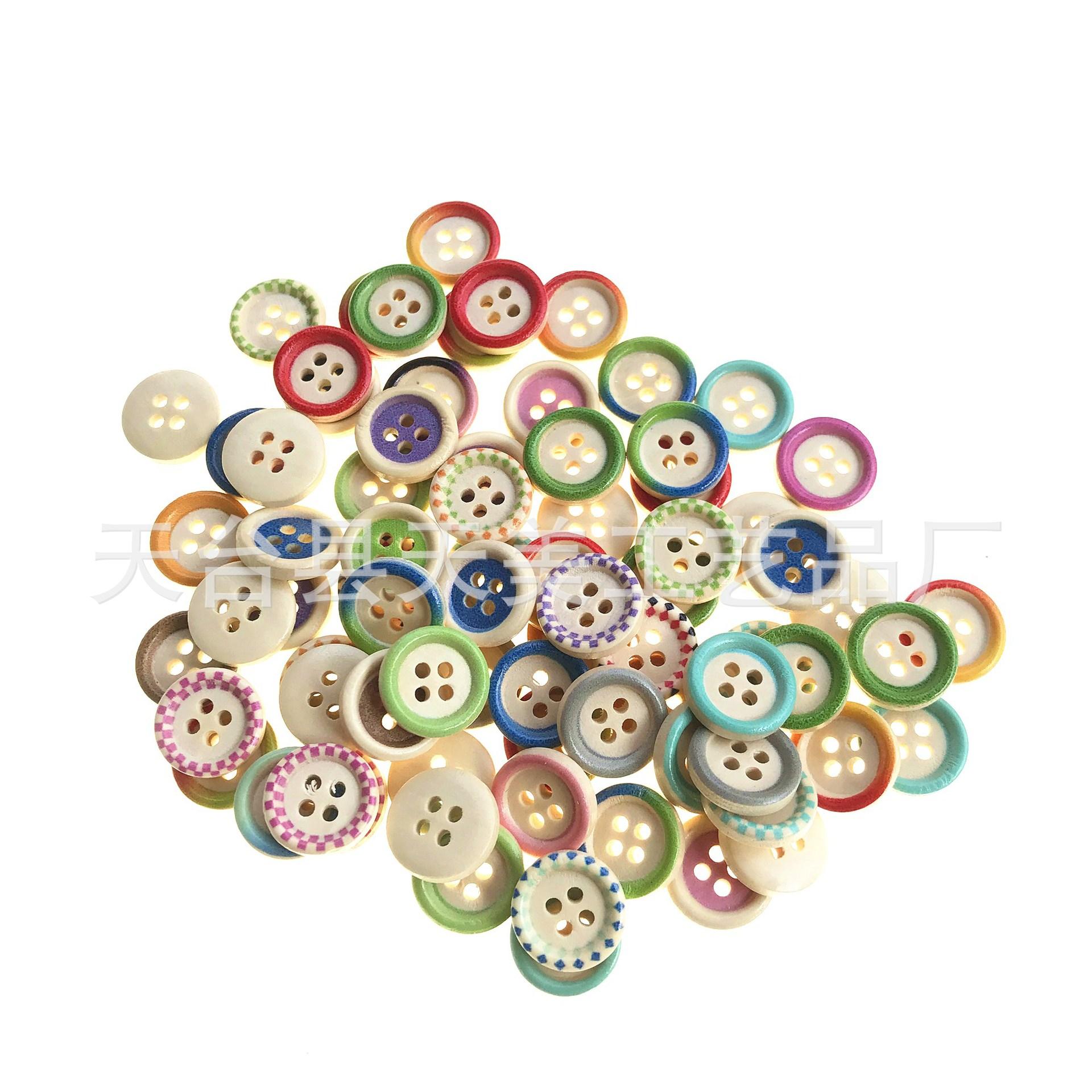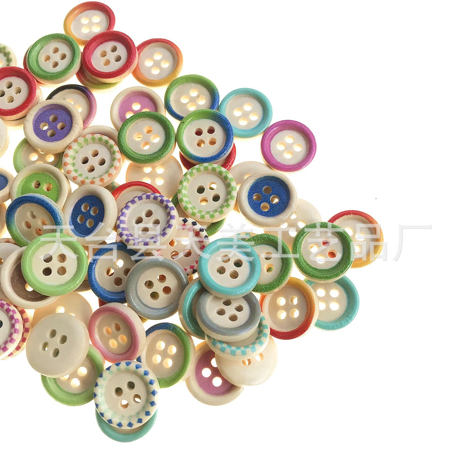 Fabricante Precio Bajo Venta al por Mayor Botones de Madera Maciza Impresos de Borde Delgado de 15 mm Accesorios de Ropa Accesorios Botones de Madera Hechos a Mano