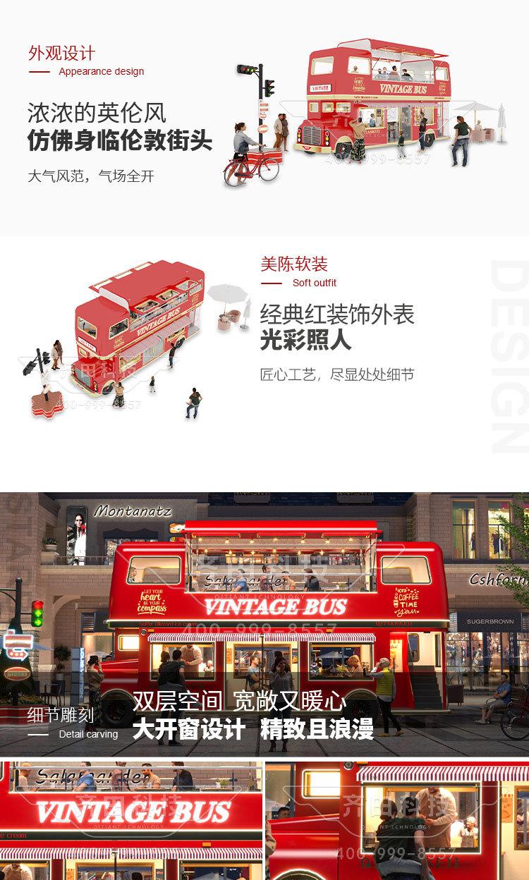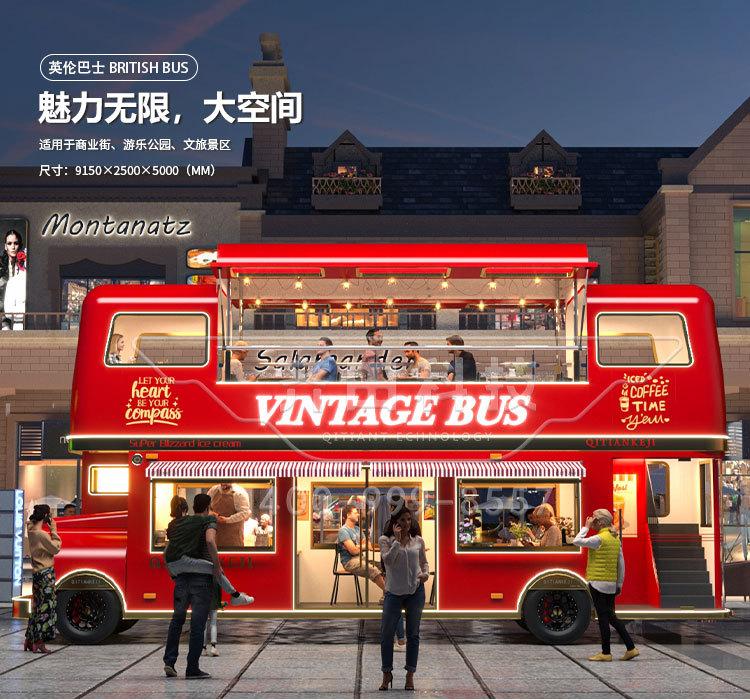 Qitian autobús de dos pisos comedor campamento camping coche de café coche de snacks comedor multifunción desayuno cuatro ruedas comida rápida
