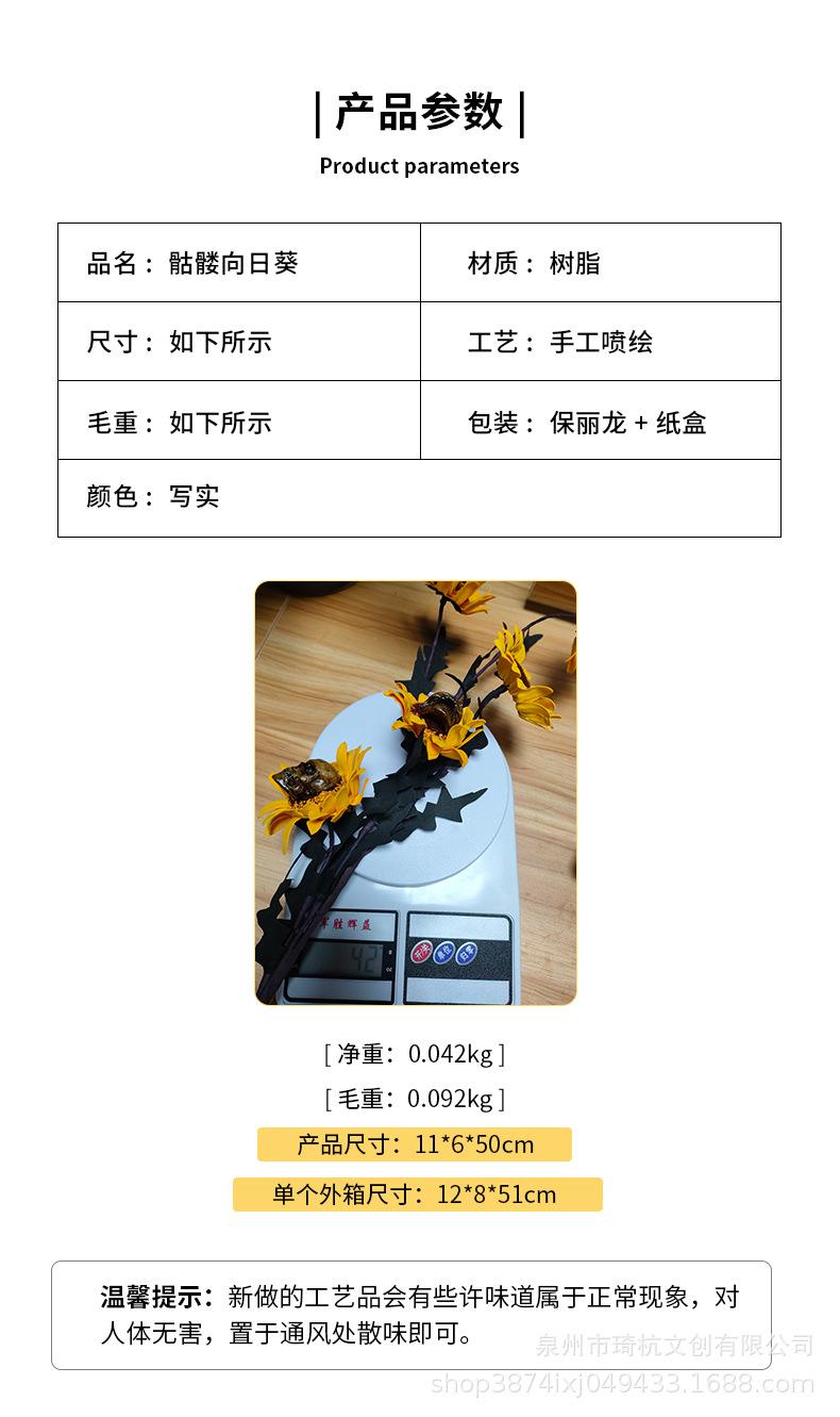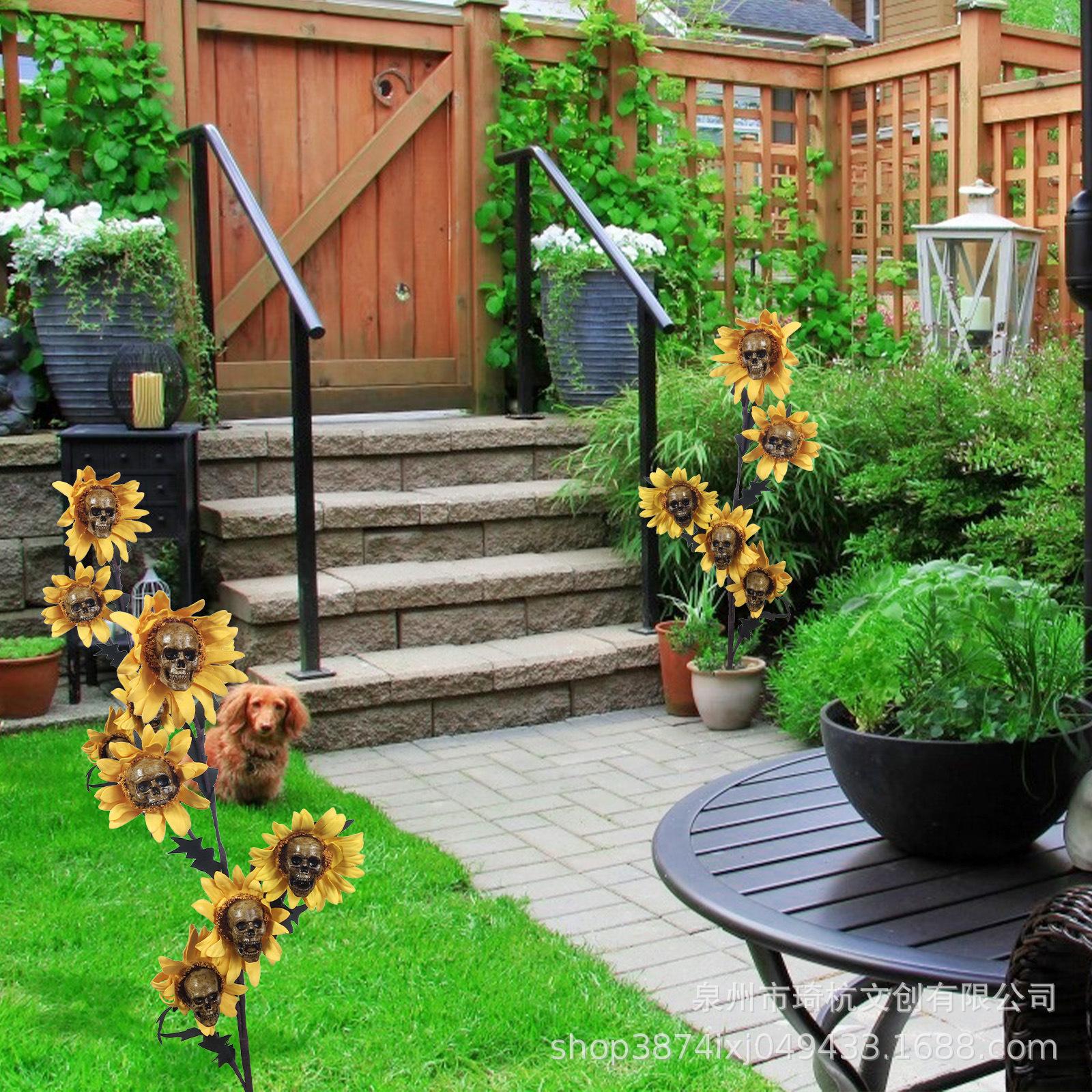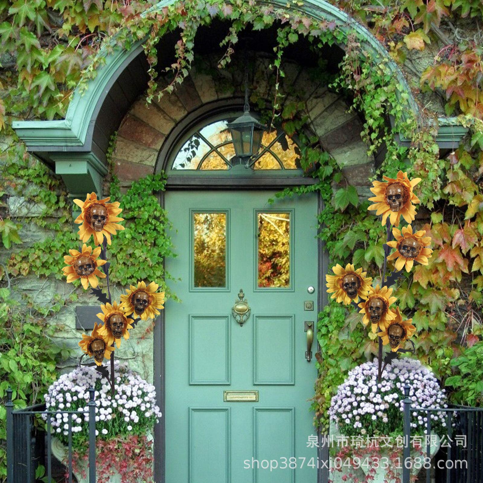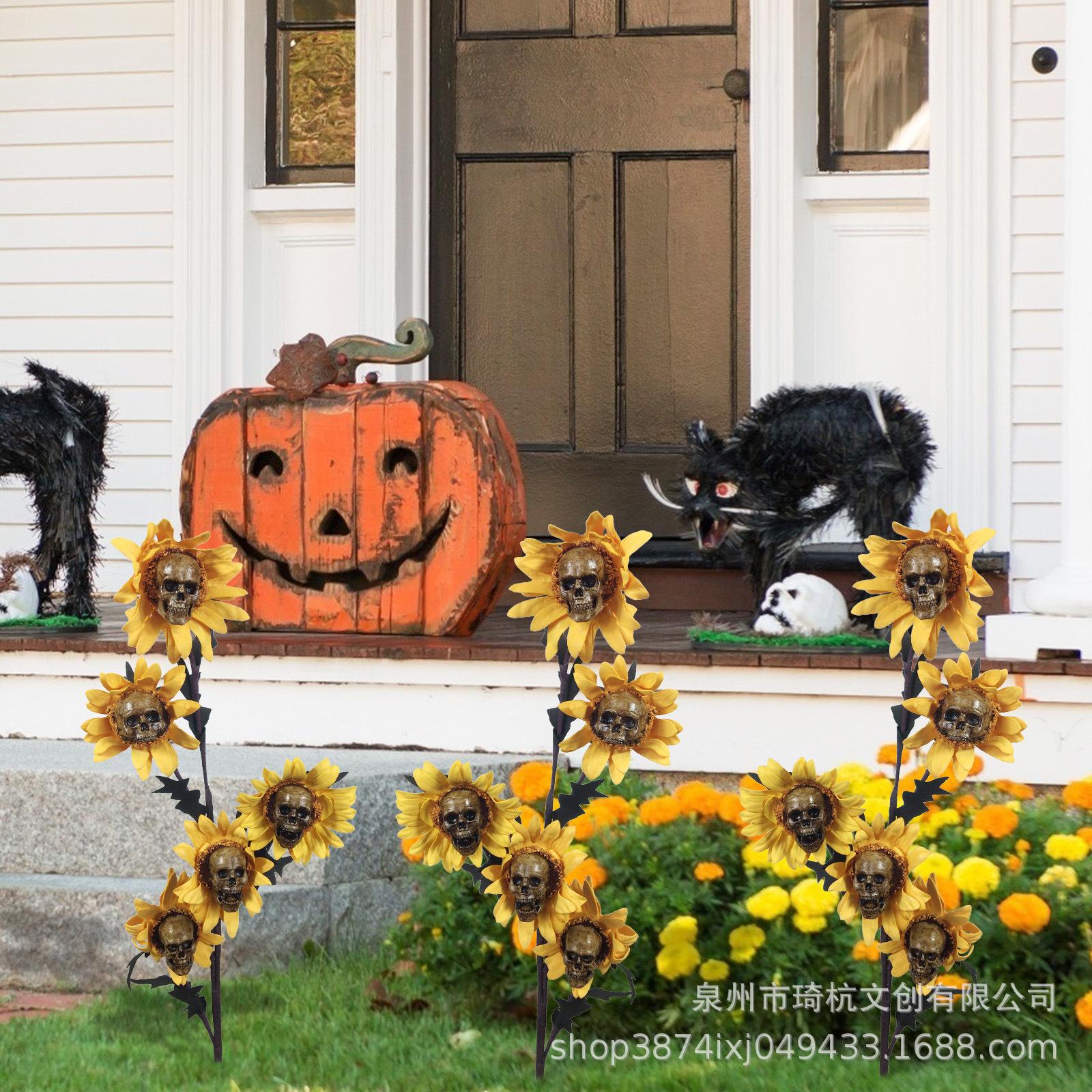 Nuevas artesanías transfronterizas de Halloween: adornos de calavera de resina de girasol para decoración de interiores y exteriores.