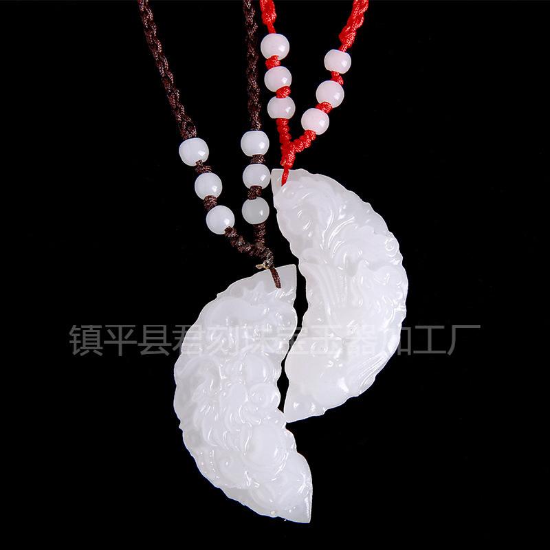 [Nombre del artículo] Colgante de dragón y fénix de jade blanco afgano