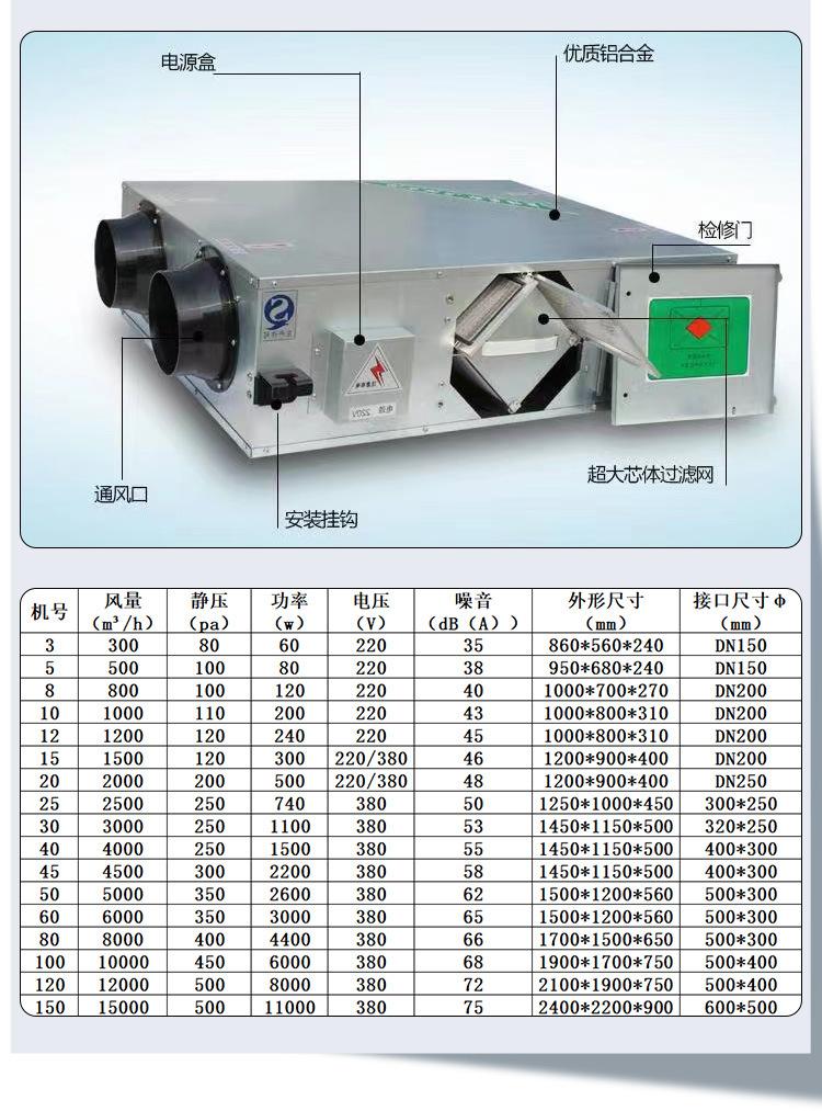 Aire acondicionado central con intercambiador de calor completo para interiores de toda la casa, sistema de aire fresco de techo, ventilador de aire fresco de flujo bidireccional comercial.