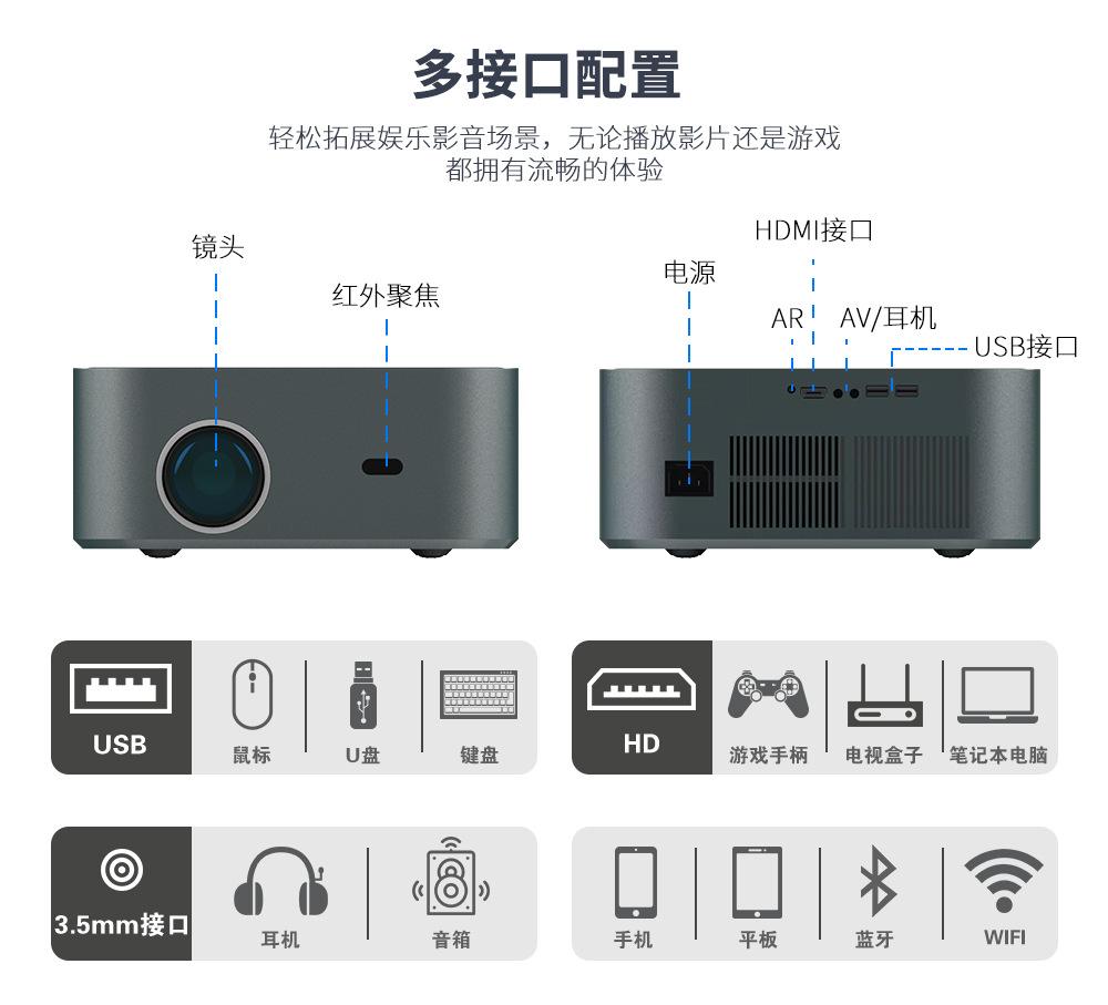 Proyector Casero de Alta Definición Proyector para Oficina Dormitorio Hotel 1080P Enfoque Automático Equipo de Pantalla de Proyección Diurna