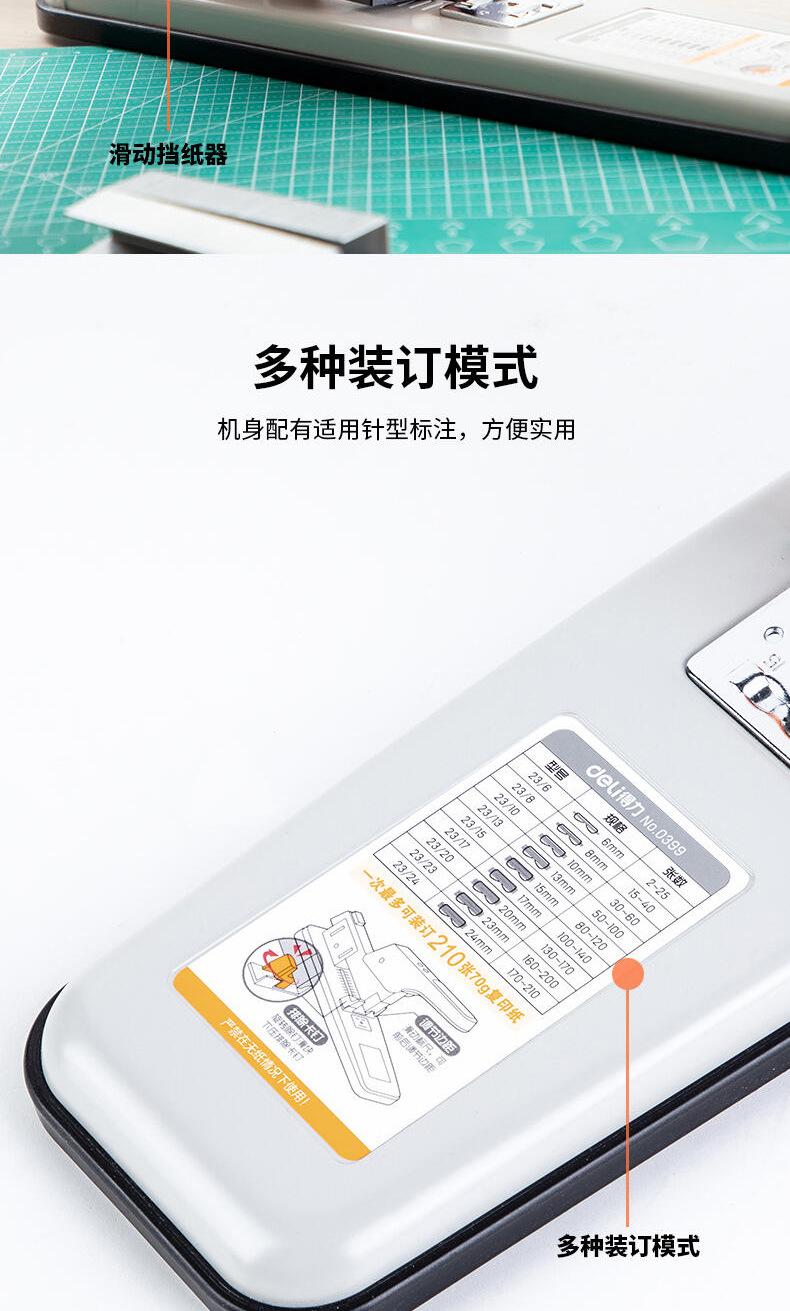 Grapadora de brazo largo Deli 0399 para trabajo pesado, ahorro de mano de obra, engrosada, para oficina, 210 páginas, venta al por mayor