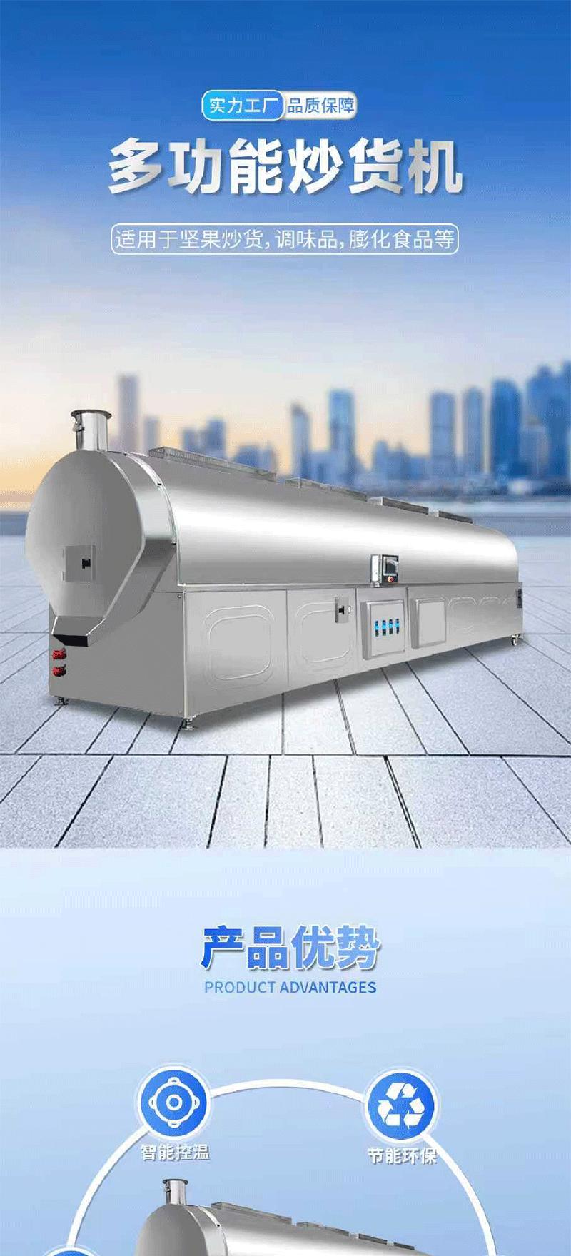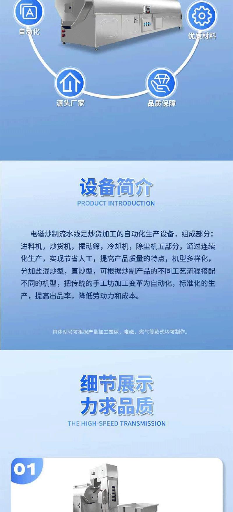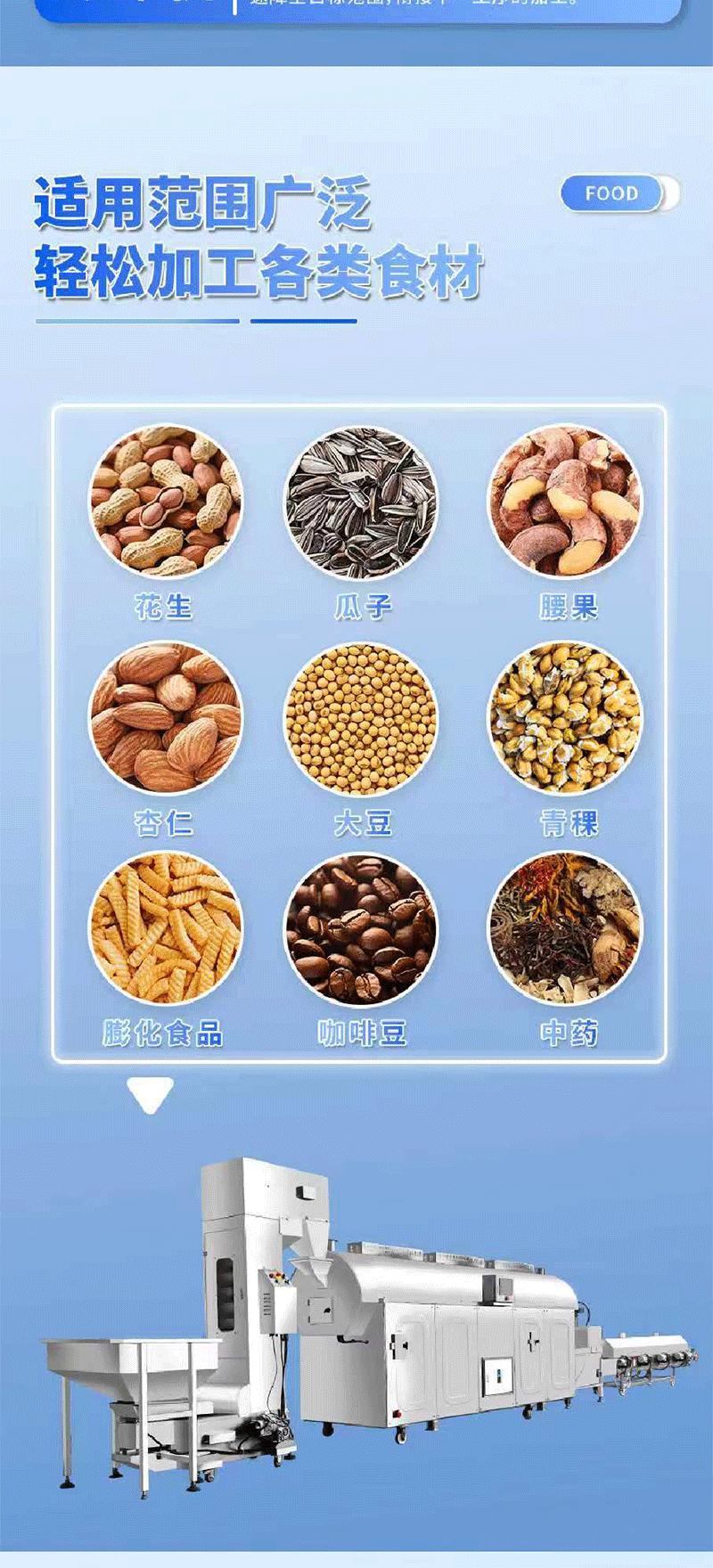 Calentamiento electromagnético continuo sartén para freír de tambor freidora mixta máquina freidora grande freír cacahuates semillas de melón equipo de línea de montaje
