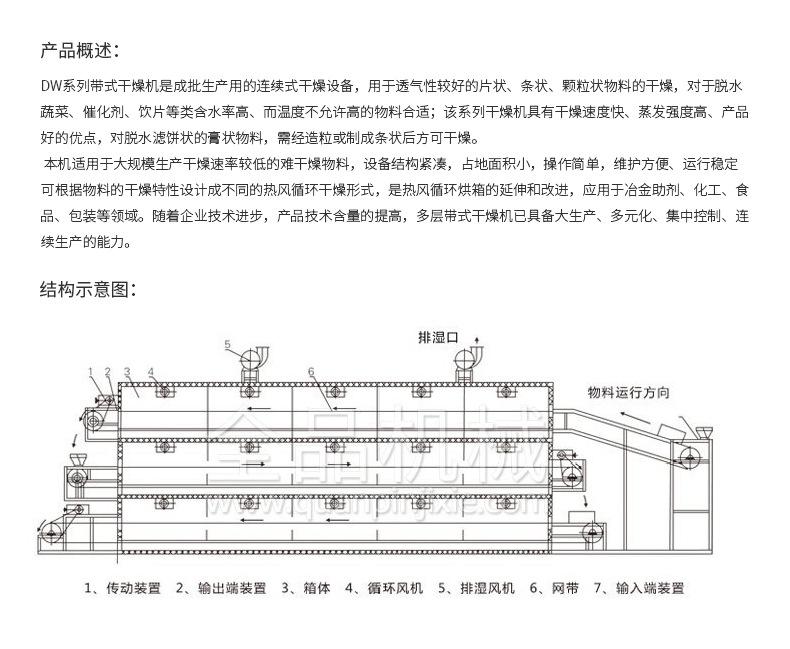(6) Alta eficiencia mecánica y térmica, buen efecto de ahorro de energía, puede ahorrar 30-60% de energía en comparación con los dispositivos de secado generales.
