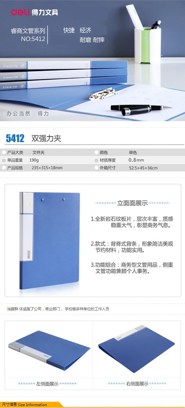 Artículos de oficina deli 5412 Carpeta de oficina para negocios A4 carpeta doble fuerte carpeta organizadora
