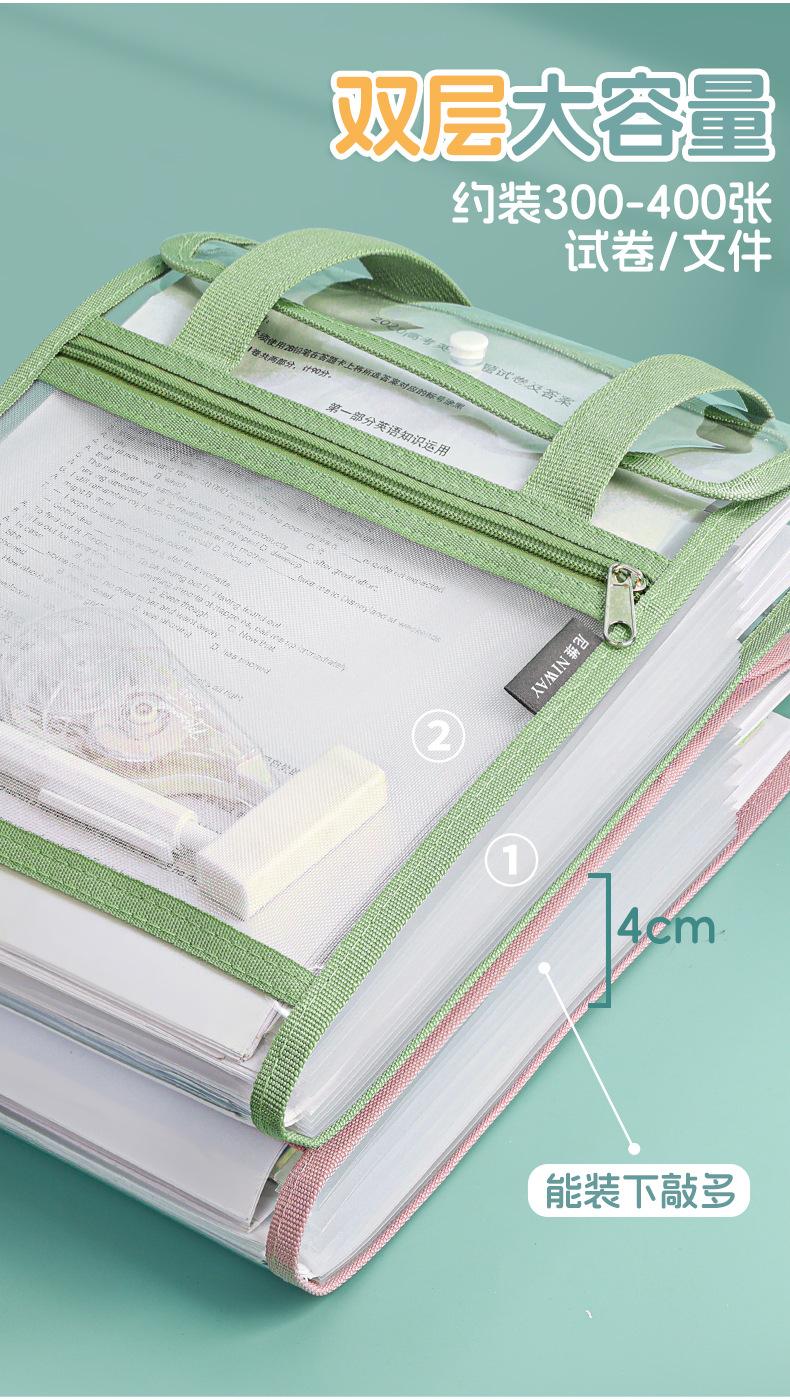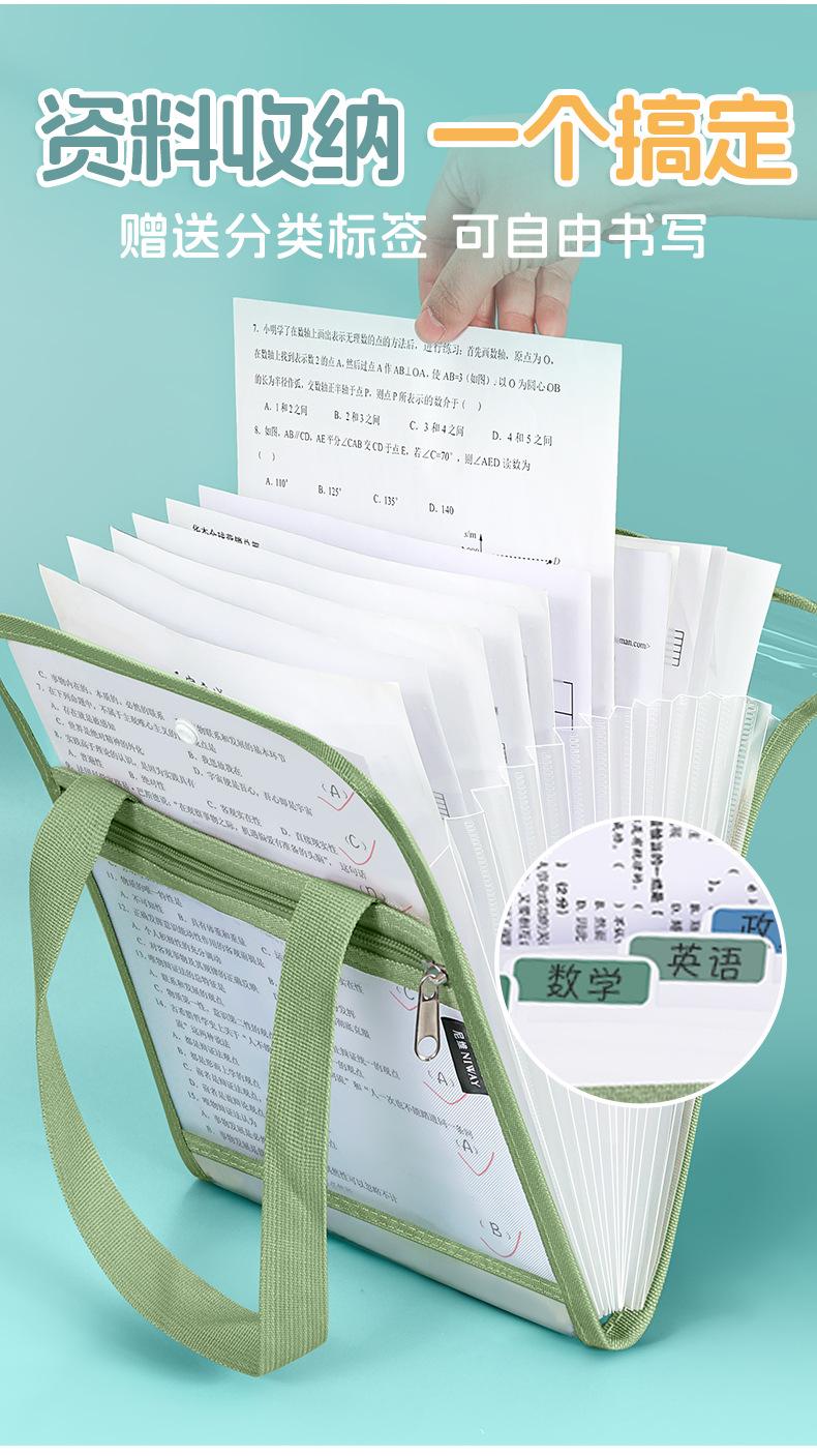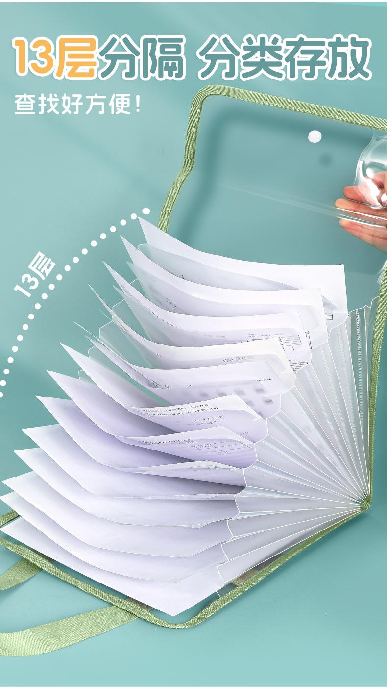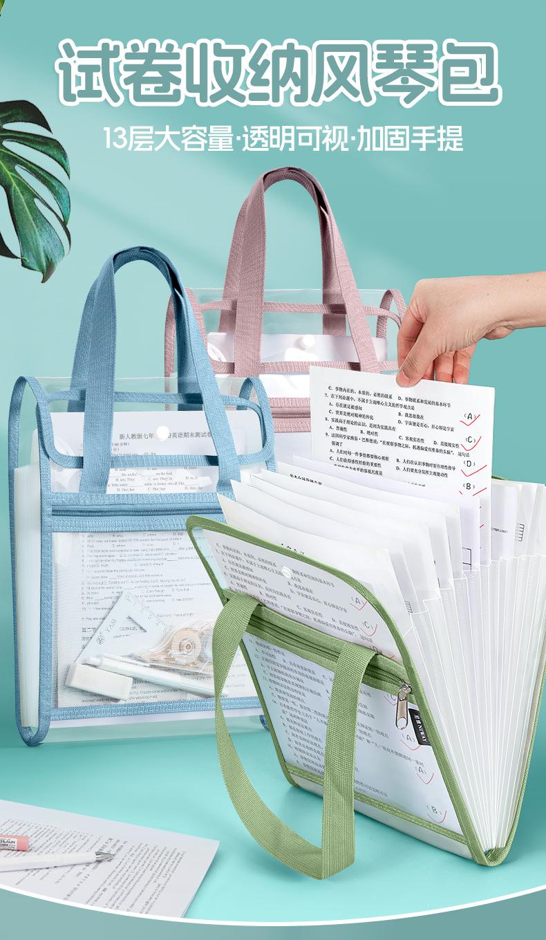 Bolsa de almacenamiento de papel de prueba transparente Huajie, carpeta vertical portátil de 13 capas, bolsa de clasificación de sujetos de gran capacidad