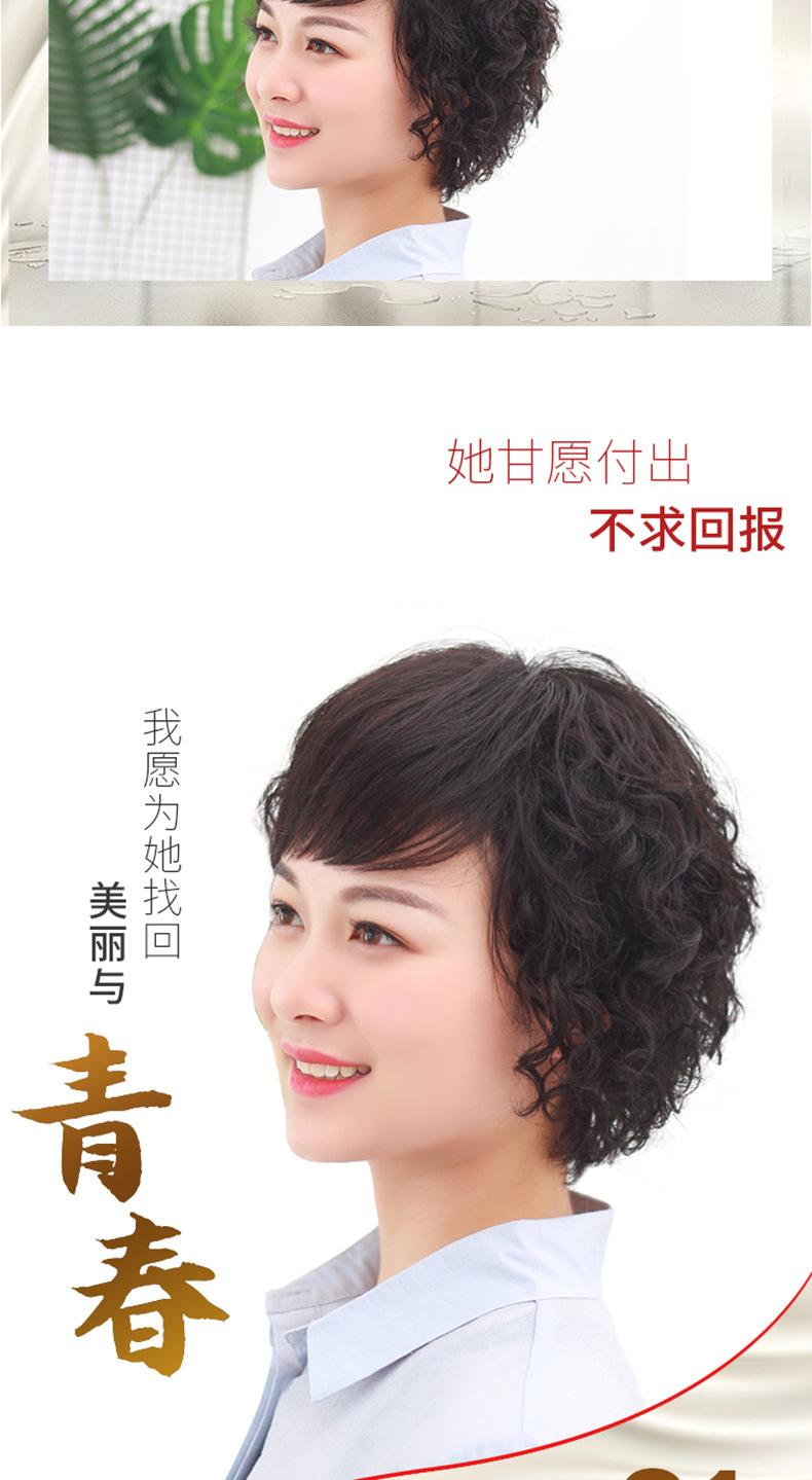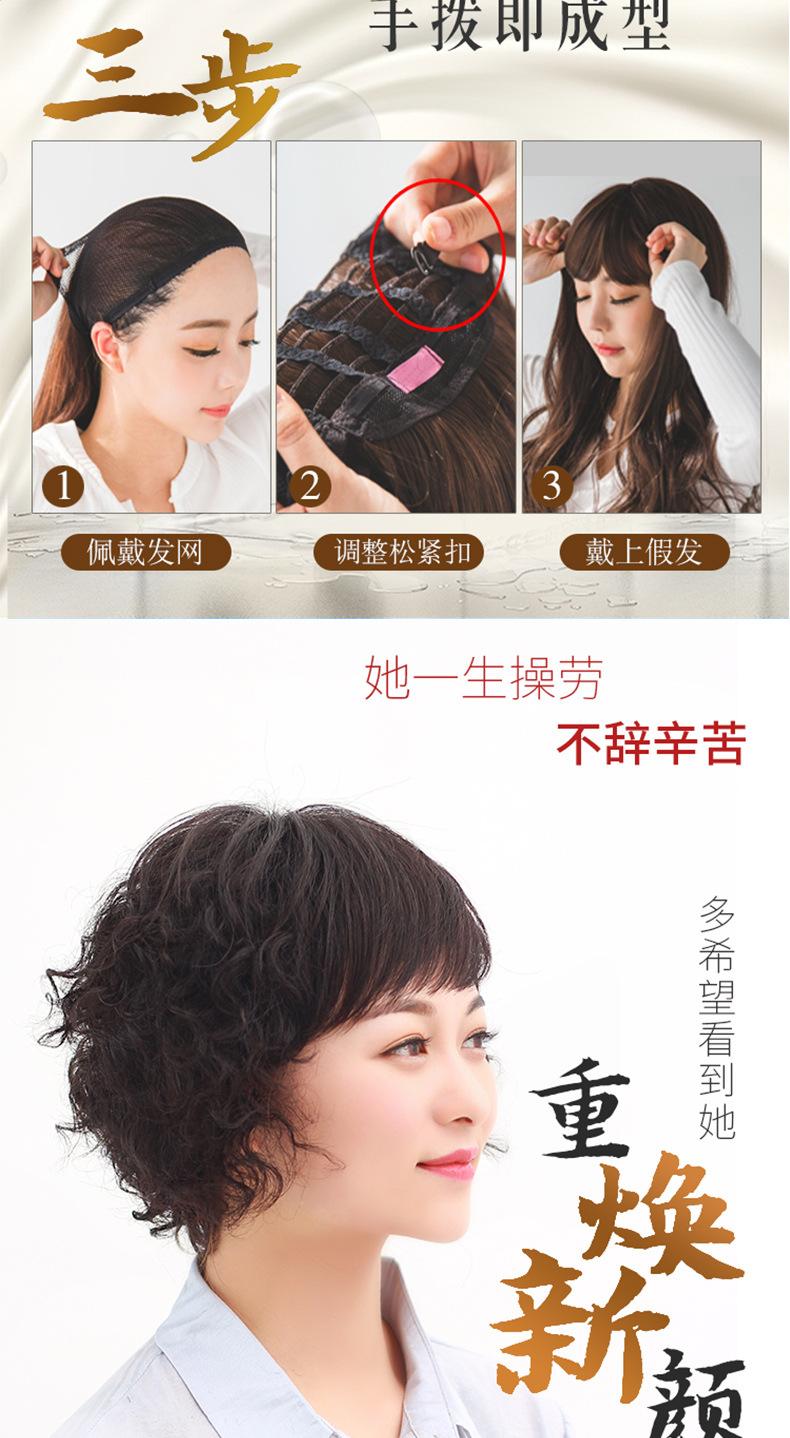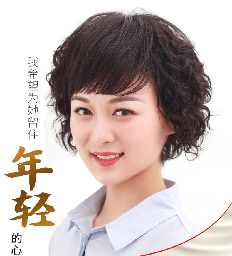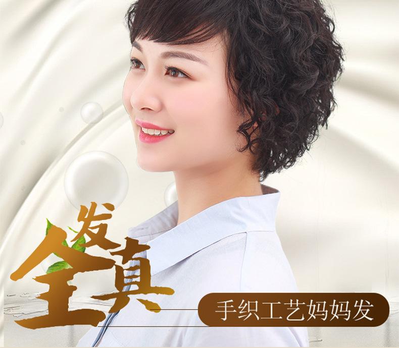 Peluca de madre, cabello corto femenino, cabello corto y rizado, cabello real natural, para mujeres de mediana edad y mayores, cara redonda, flequillo oblicuo y esponjoso, cobertura total de la cabeza.