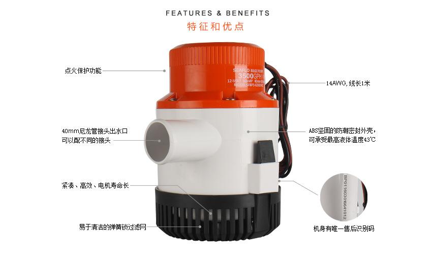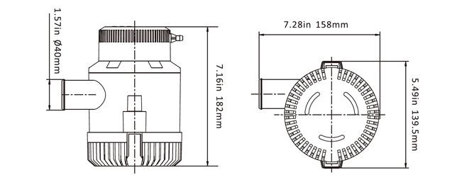 | SFBP2-G3500-01 | 3500 GPH | 24 voltios | 9.0 A | 13.0 A | 7 metros | 1 metro | 40 mm/1-1/2" | 2.10/2.37 kg |