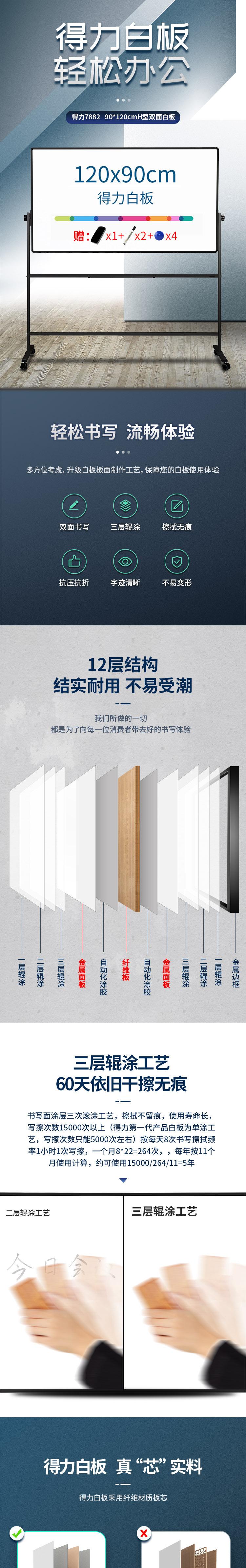 Pizarra blanca de doble cara tipo H Deli 7882 900*1200 móvil abatible magnética de doble cara para oficina y enseñanza