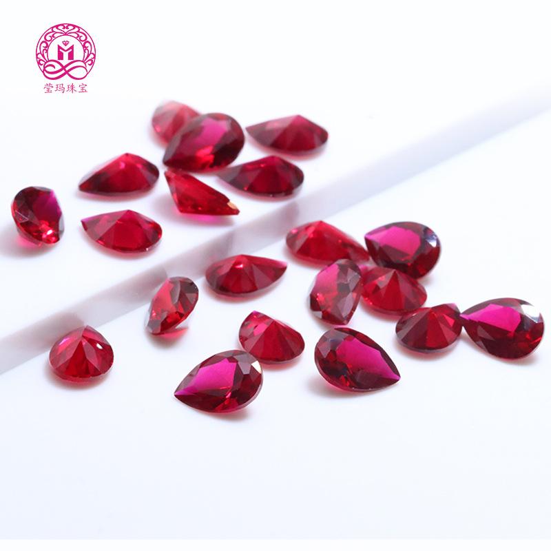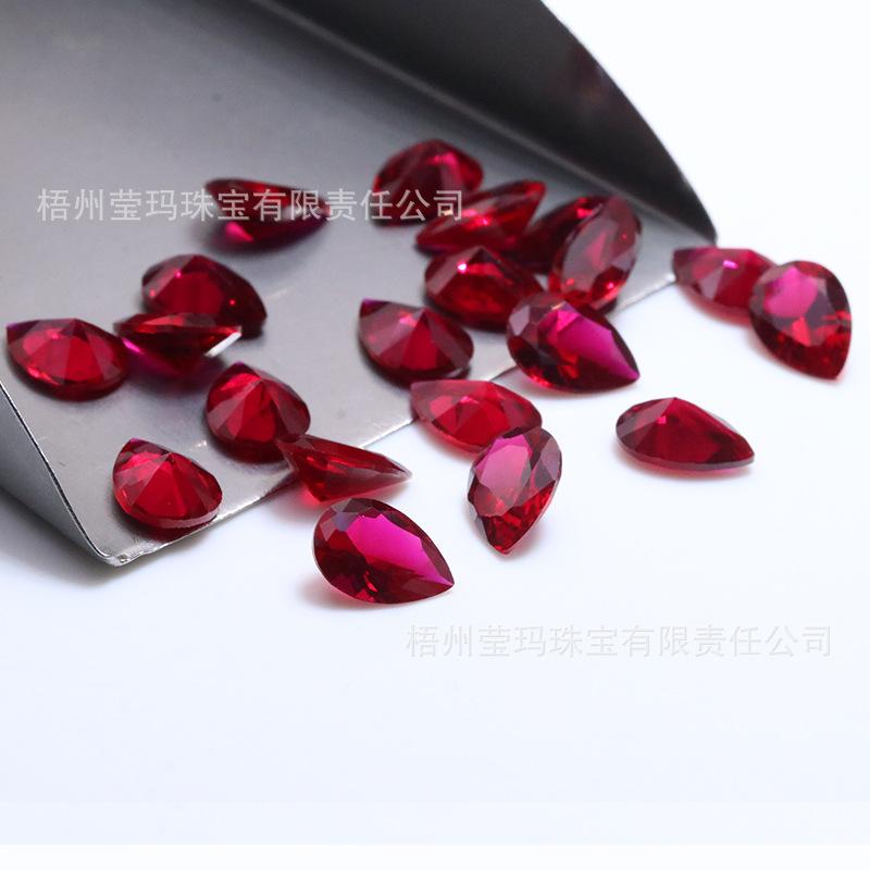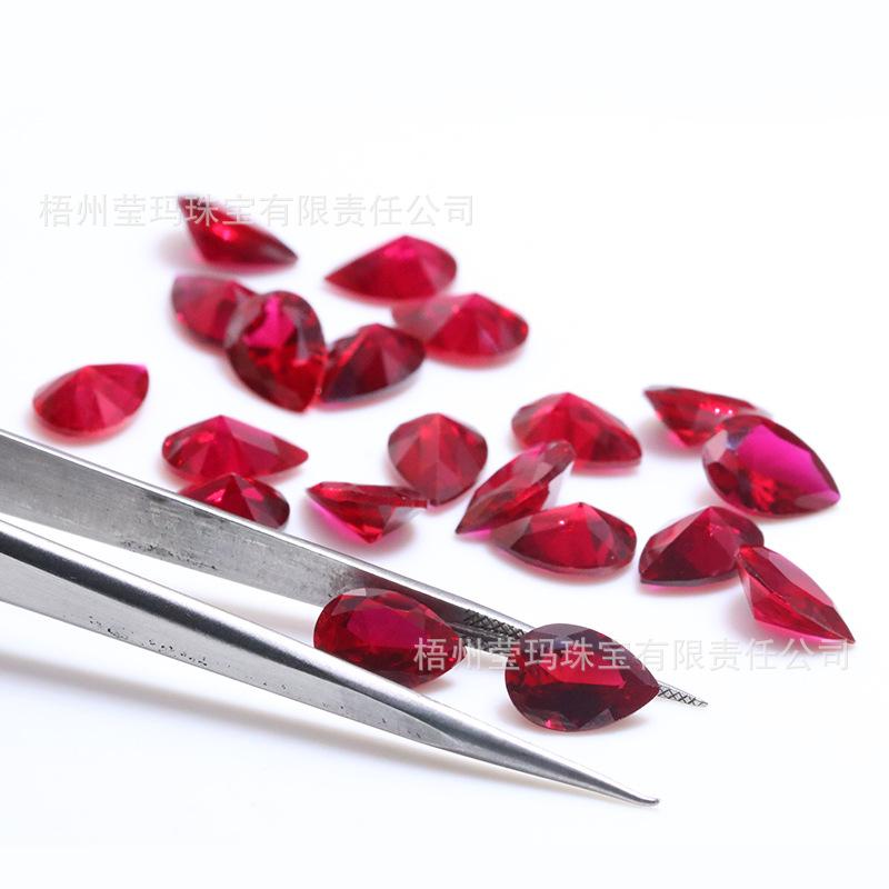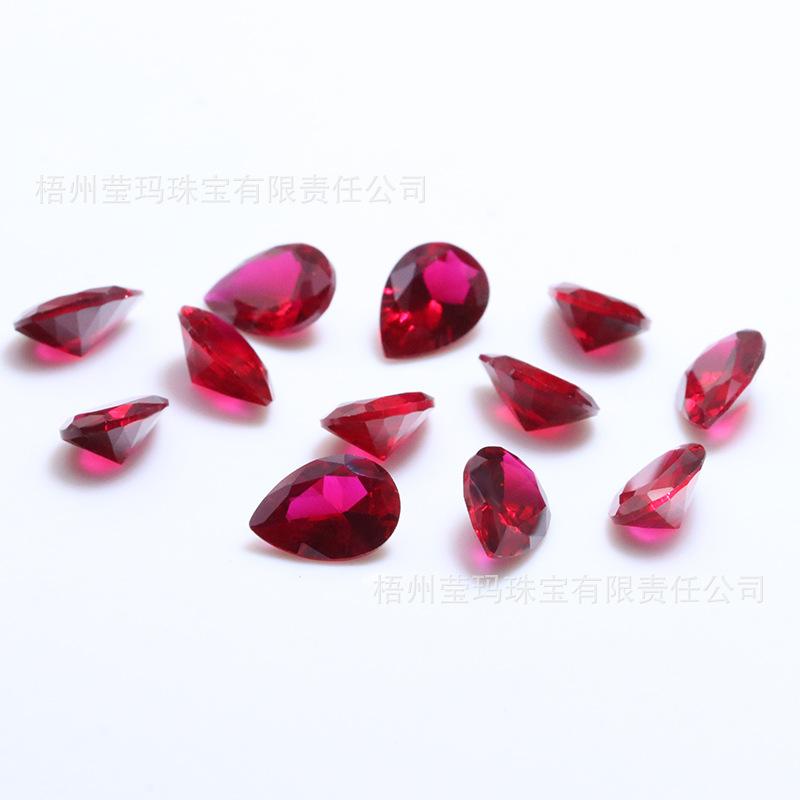 Gema sintética de corindón rojo oscuro en forma de pera 8# 2*3-10 * 14 mm, imitación de rubí rojo oscuro en forma de gota, piedra desnuda de tesoro rojo