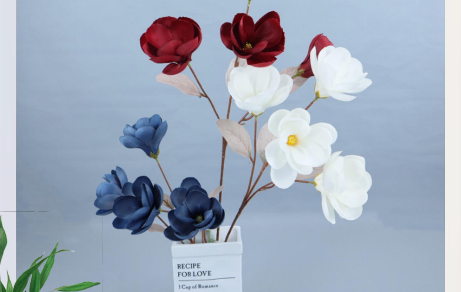 Simulación de 4 cabezas de magnolia, accesorios para fotografía de bodas, vestido de casa, simulación de flores, flores de carretera, flores de seda, flores falsas al por mayor