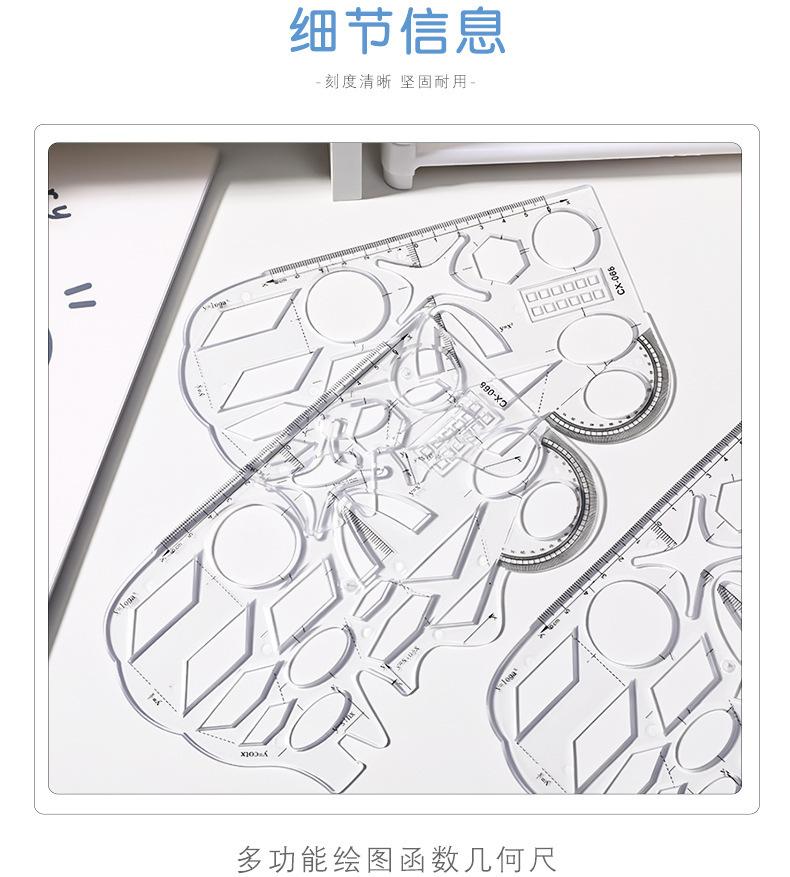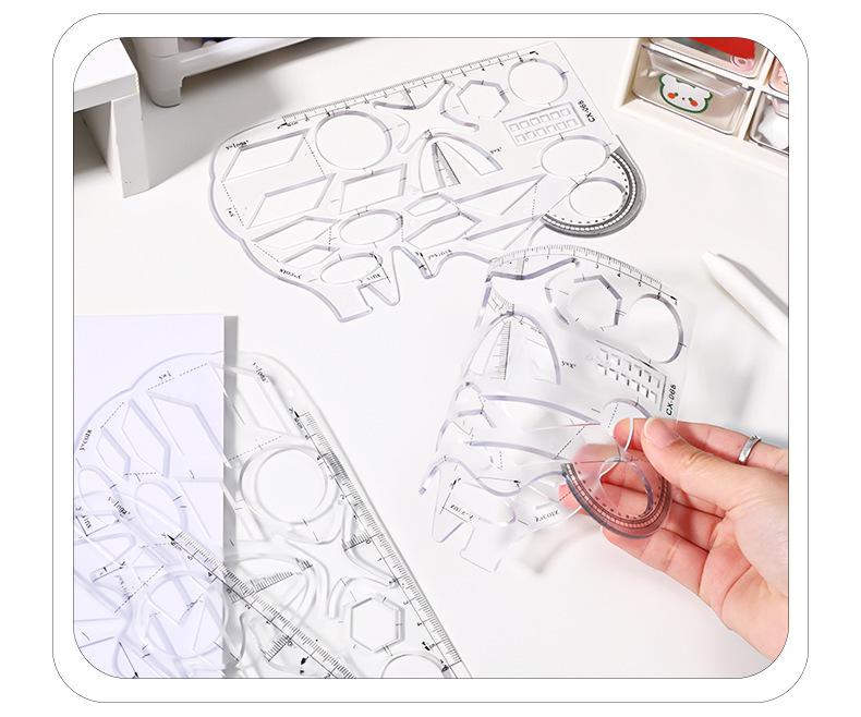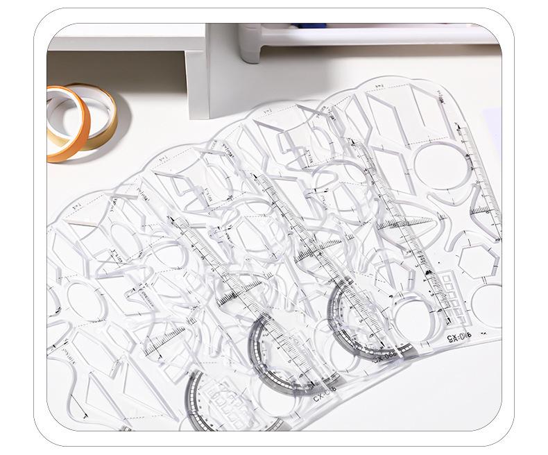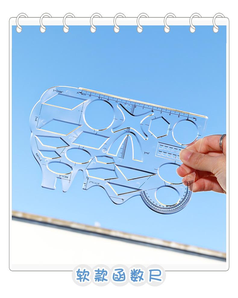 Regla suave multifuncional transparente Regla de función geométrica plantilla gráfica hueca herramienta de dibujo para estudiantes regla rígida