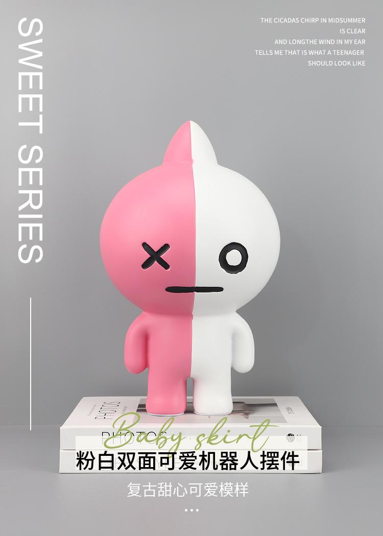 Adornos de resina con forma de robot de doble cara, creativos, de lujo, de estilo nórdico, rosa y blanco, para sala de estar, dormitorio infantil, accesorios para el hogar