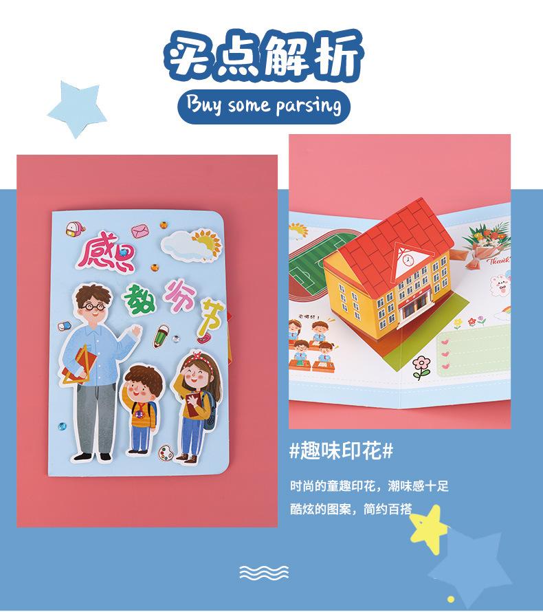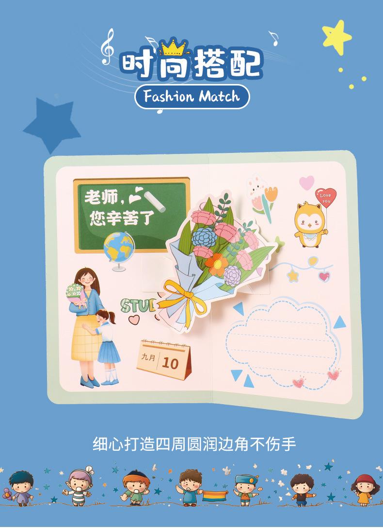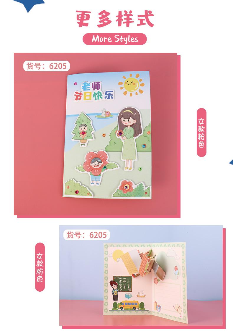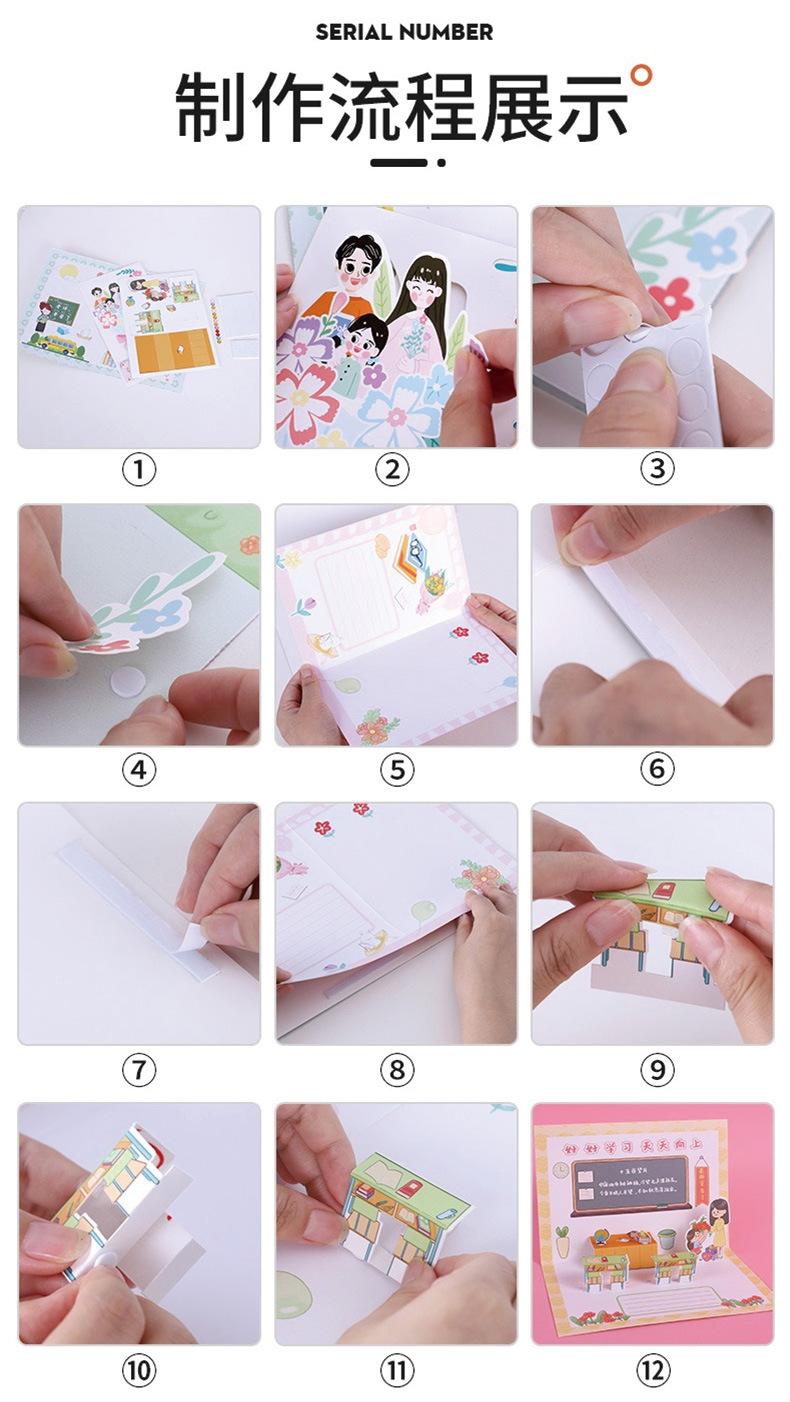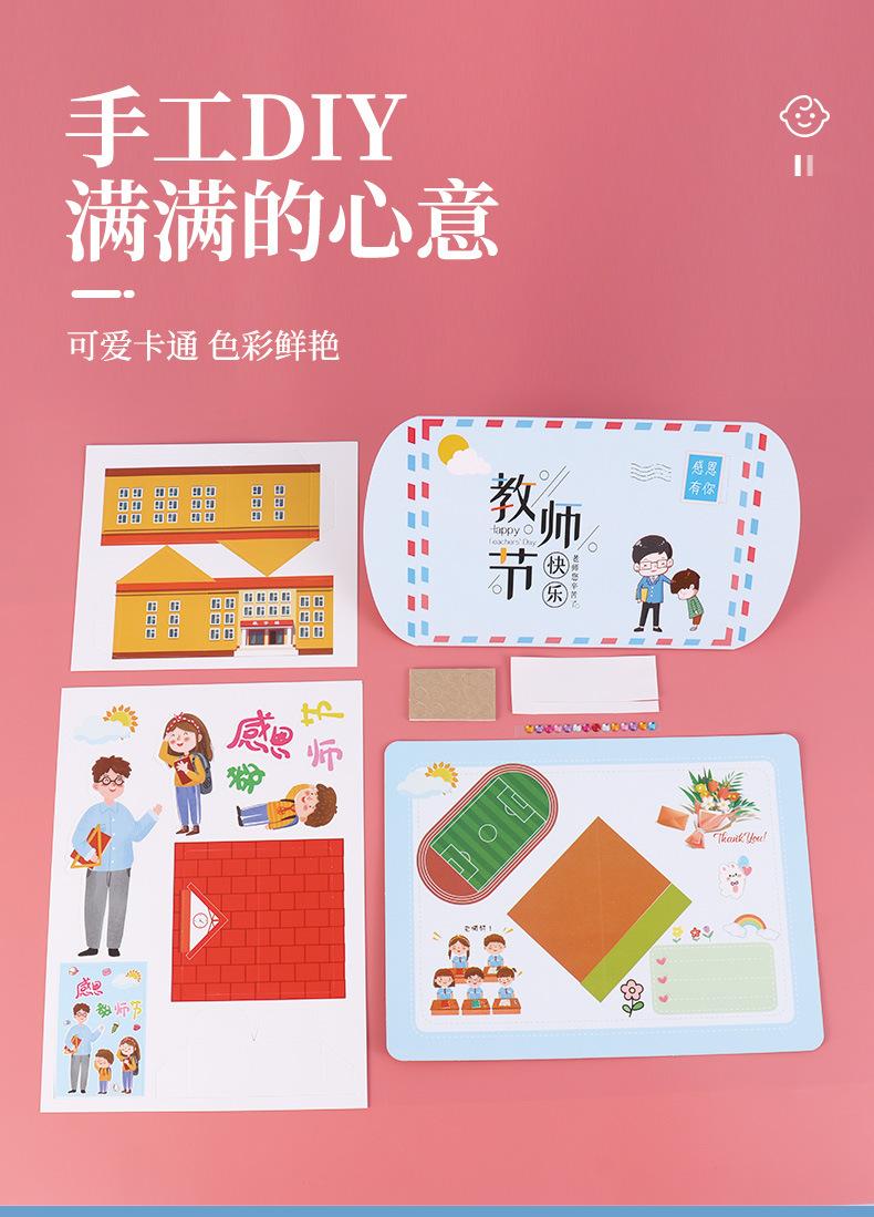 Nueva Tarjeta de Felicitación Estéreo para el Día del Maestro Hecha a Mano DIY Paquete de Material Semiterminado Tarjeta Estéreo Creativa para Niños de Aspecto Elevado