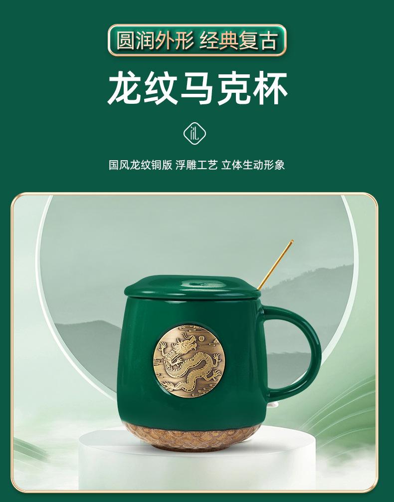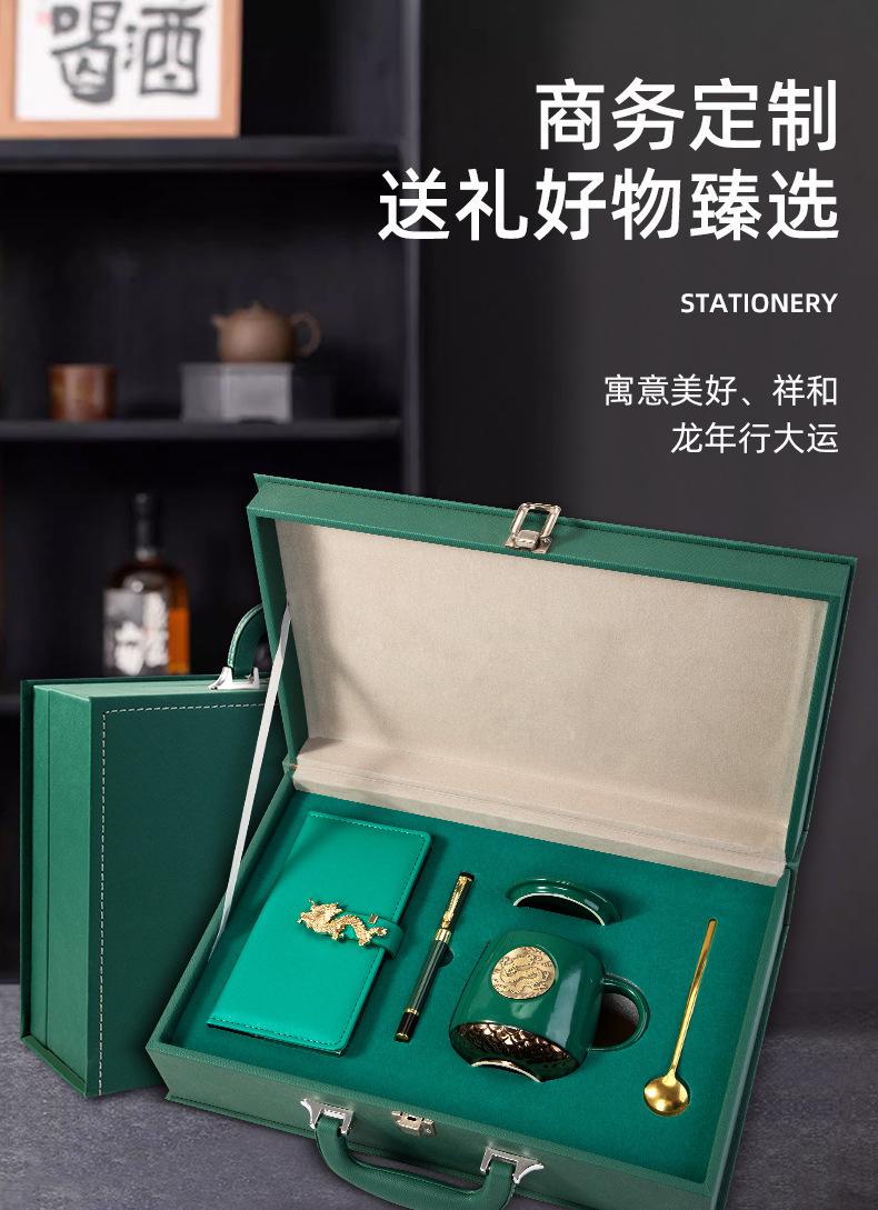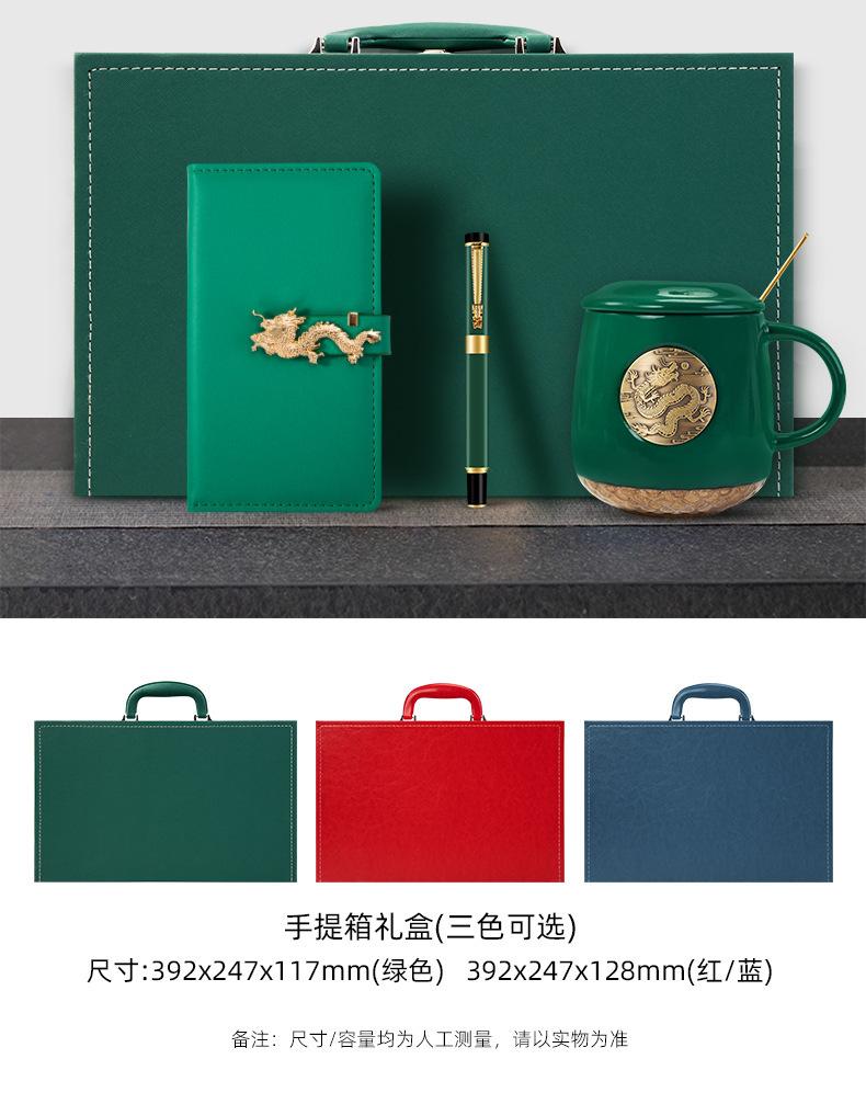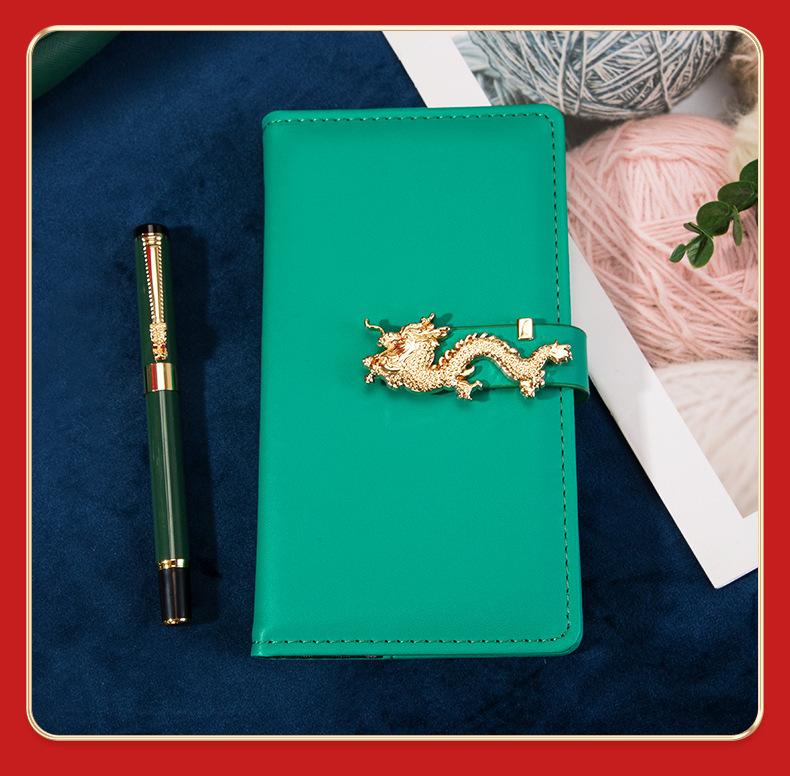 Green Dragon year copper seal cup A6 Dragon buckle faucet pen three-piece set