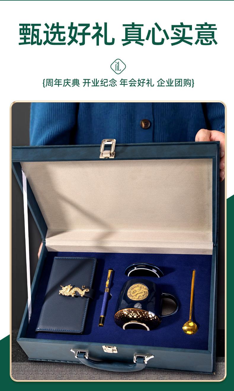Blue Dragon year copper seal cup A6 Dragon buckle faucet pen three-piece set