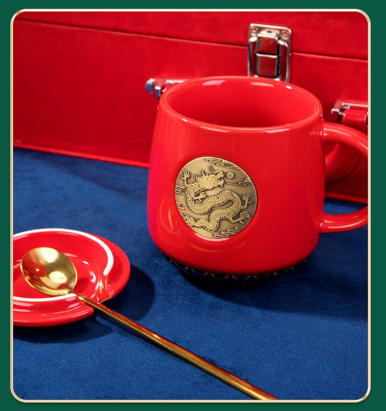 Red Dragon year copper seal cup A6 Dragon buckle faucet pen three-piece set