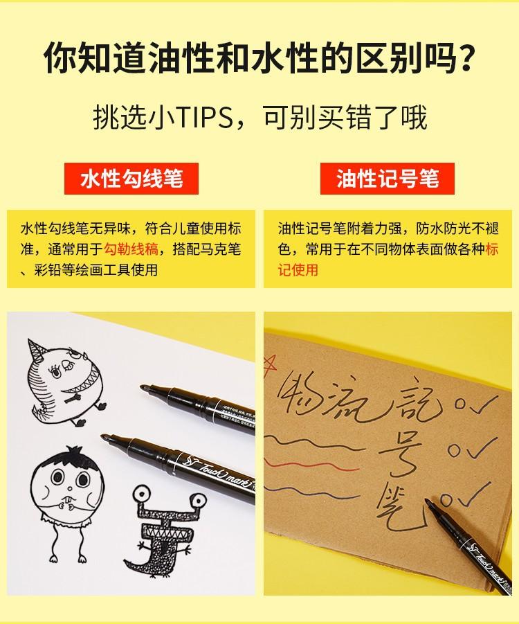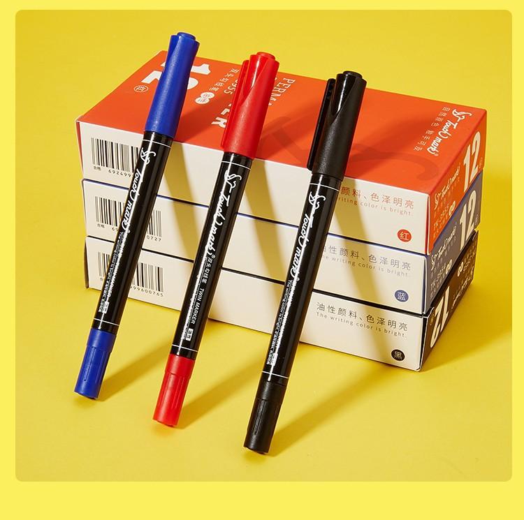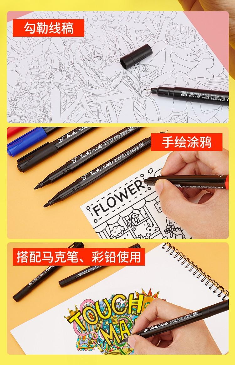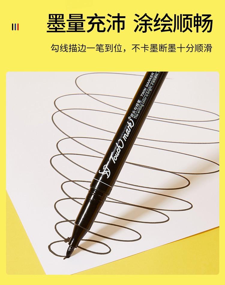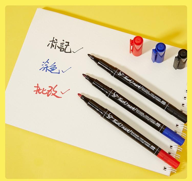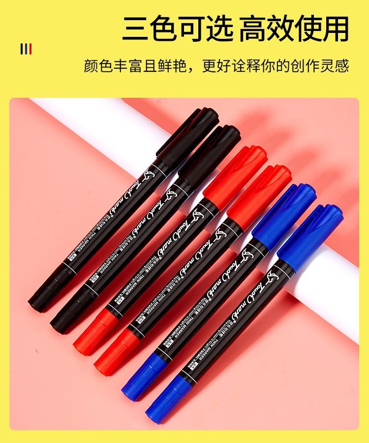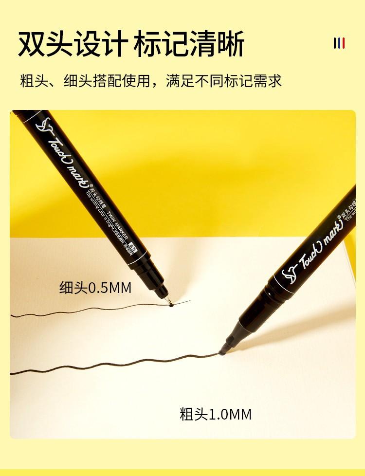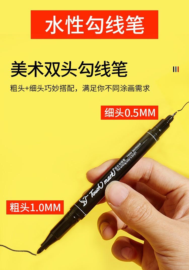 Rotulador de doble punta, resistente al agua y al aceite, para dibujo de estudiantes de primaria, con punta de gancho, color negro