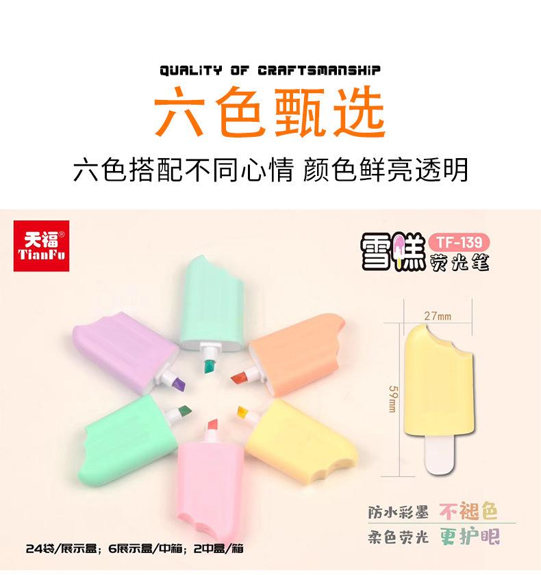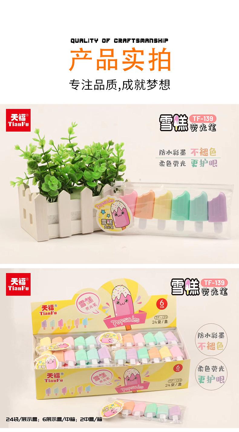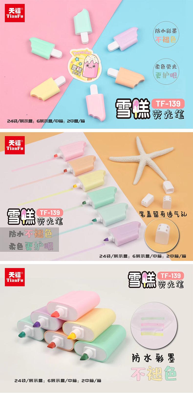 Resaltador de helado de dibujos animados, 6 colores, trazo áspero, marcador de color caramelo, regalo para estudiantes