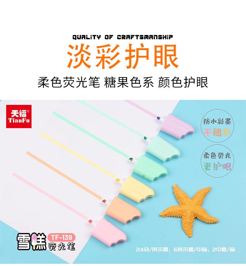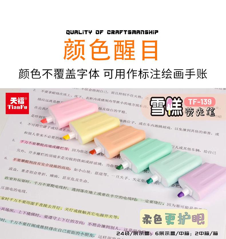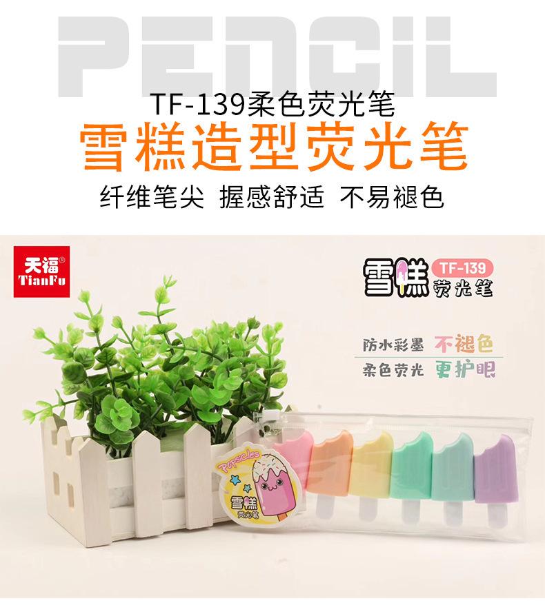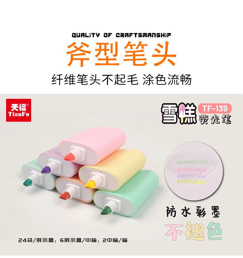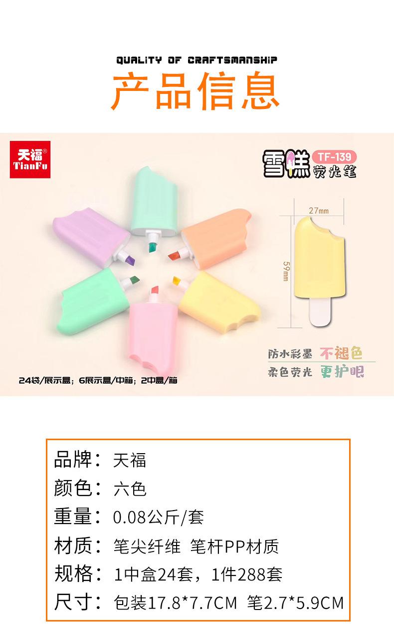 Resaltador de helado de dibujos animados, 6 colores, trazo áspero, marcador de color caramelo, regalo para estudiantes