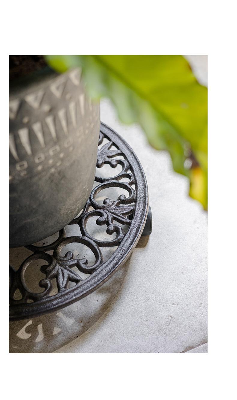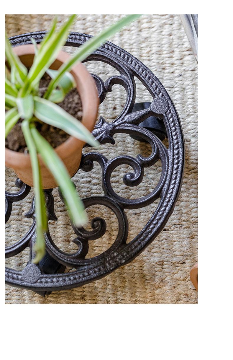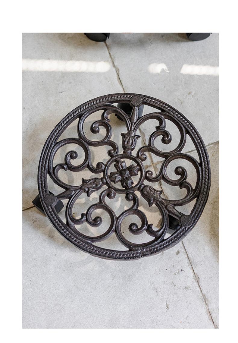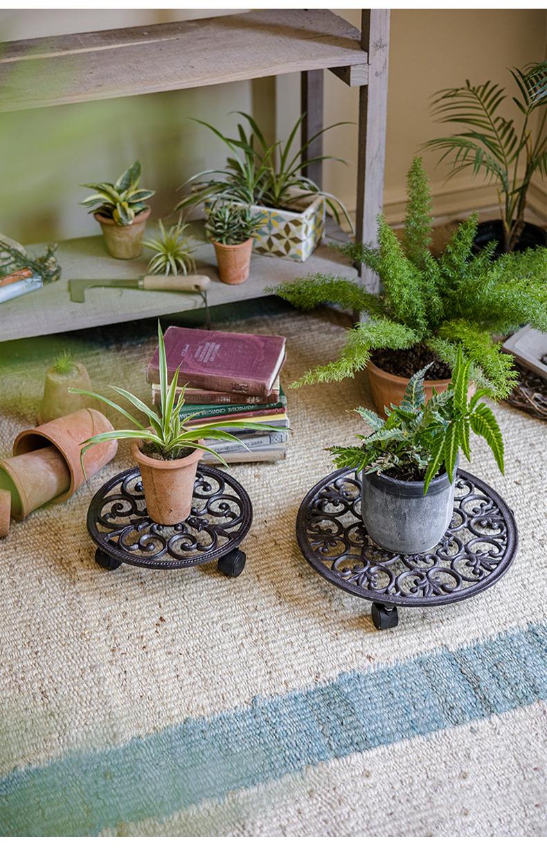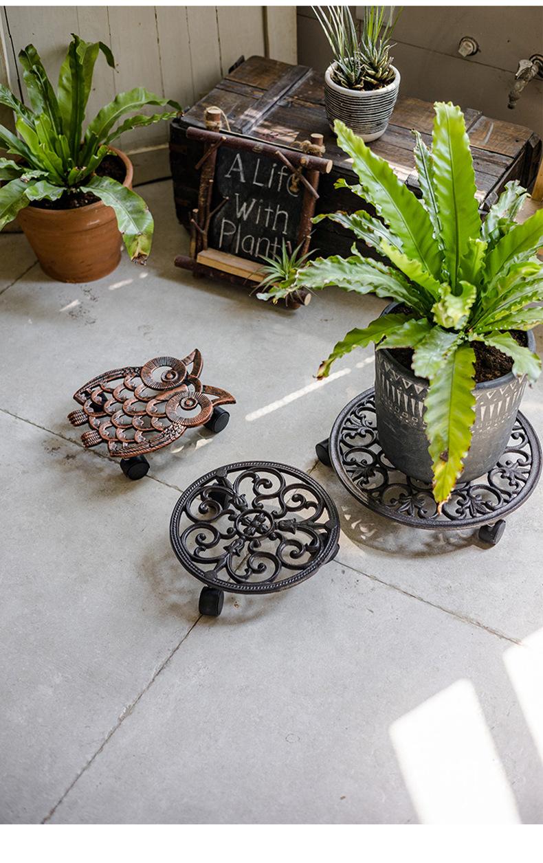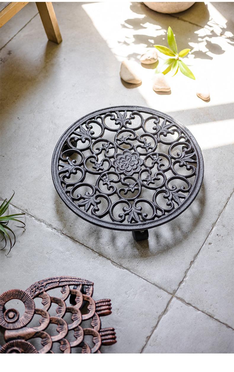 Bandeja para macetas de hierro fundido de estilo europeo con rueda universal para interiores, balcones, salas de estar, hoteles, jardines, patios y oficinas.