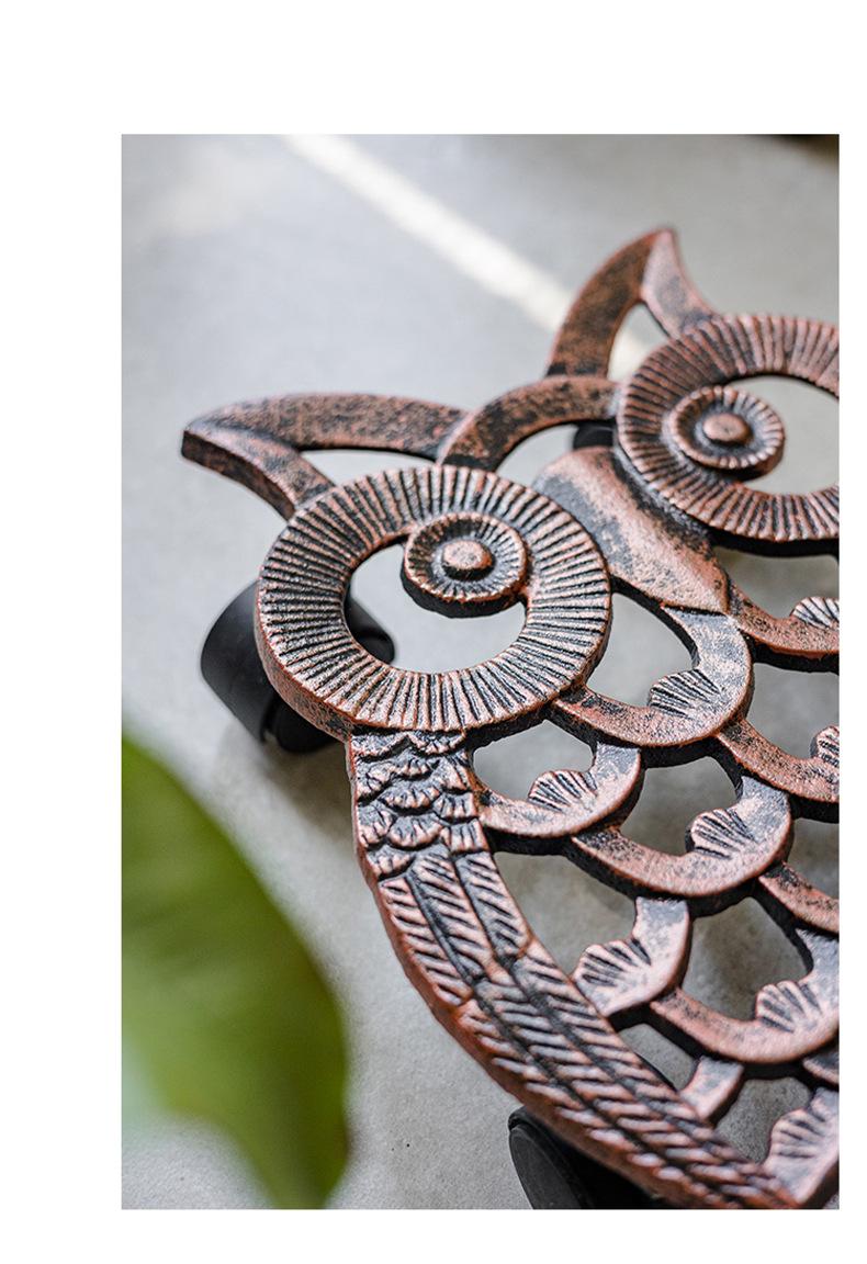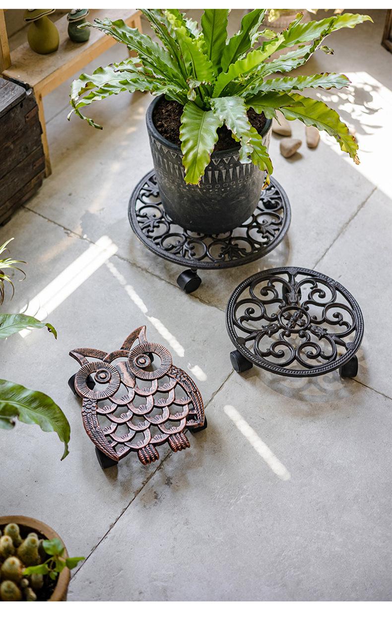 Owl wheel flower tray-brown rust 5602-1, Round Floral Wheeled Flower Pot Trumpet -5293, Round Flower Ornamenta...