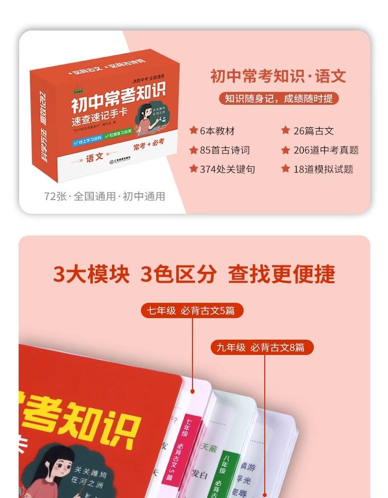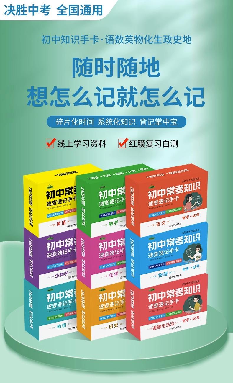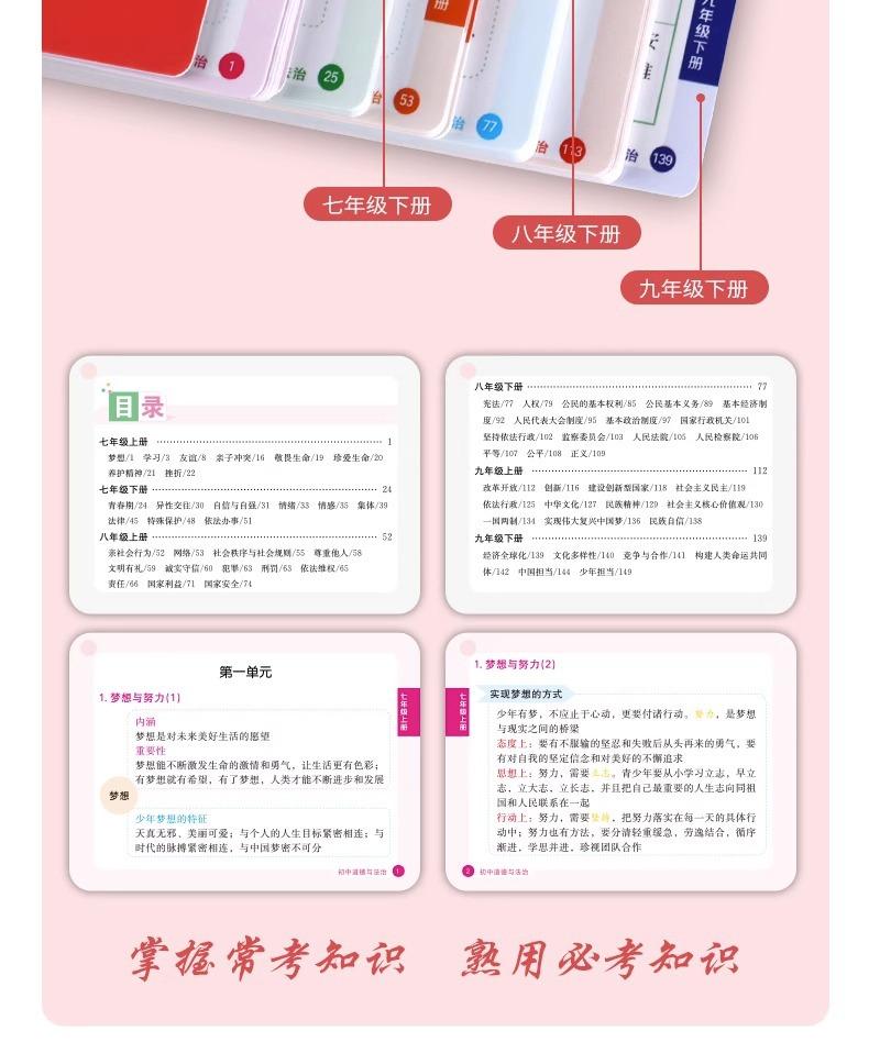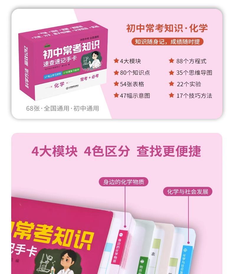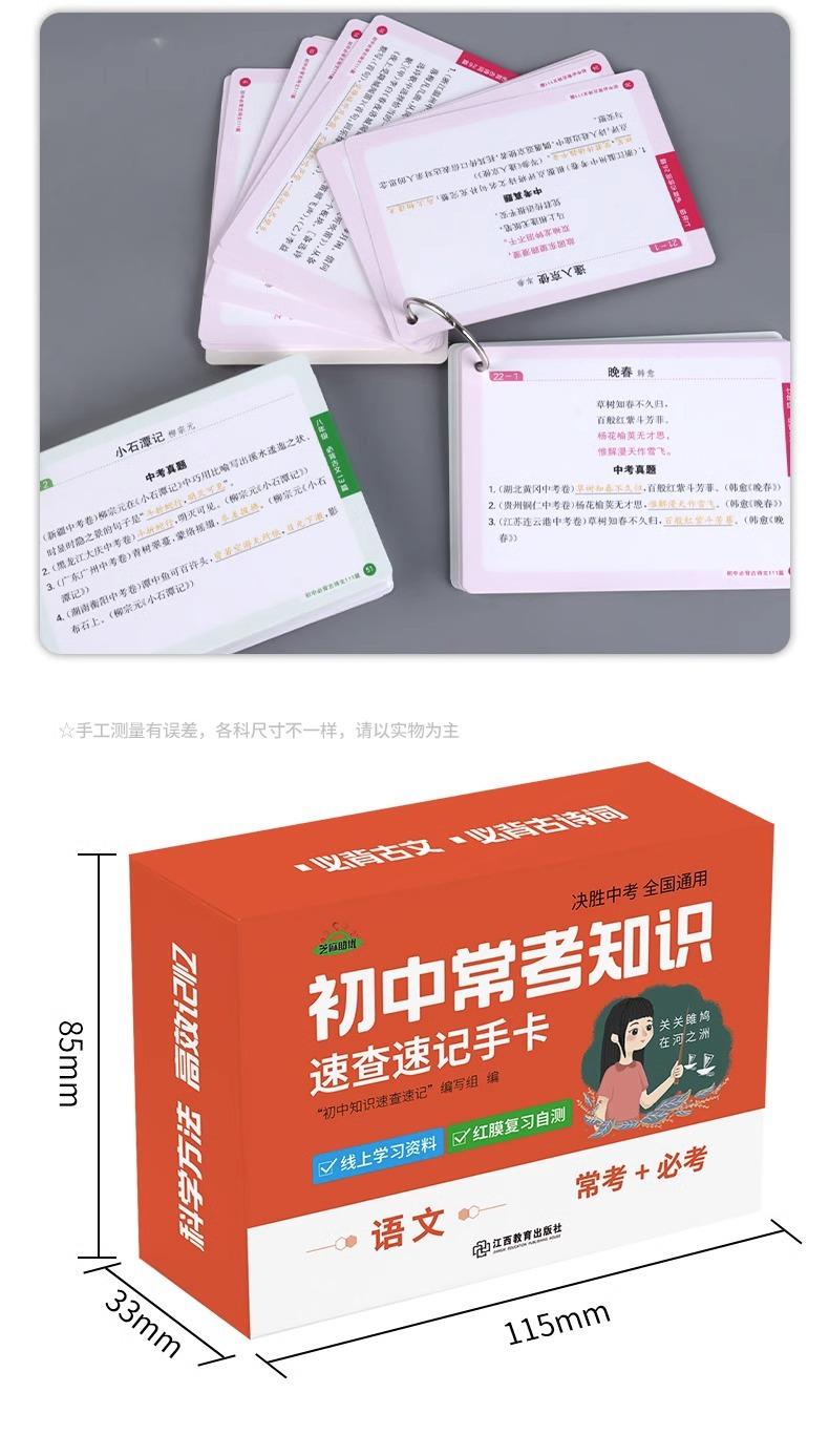 Tarjetas de taquigrafía de conocimiento para examen de secundaria Matemáticas chinas Inglés Física Química Biología Tarjetas de puntos de prueba Pantalones con bolsillo de solapa Libro