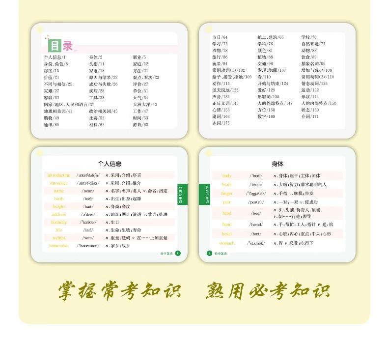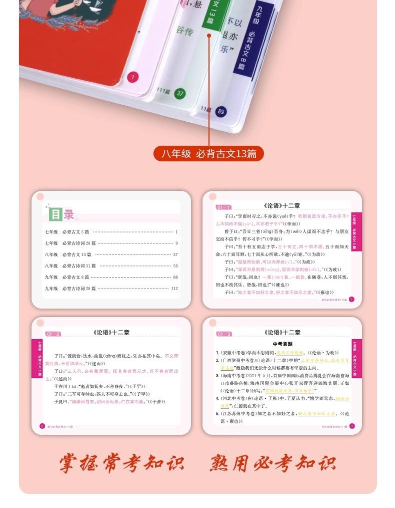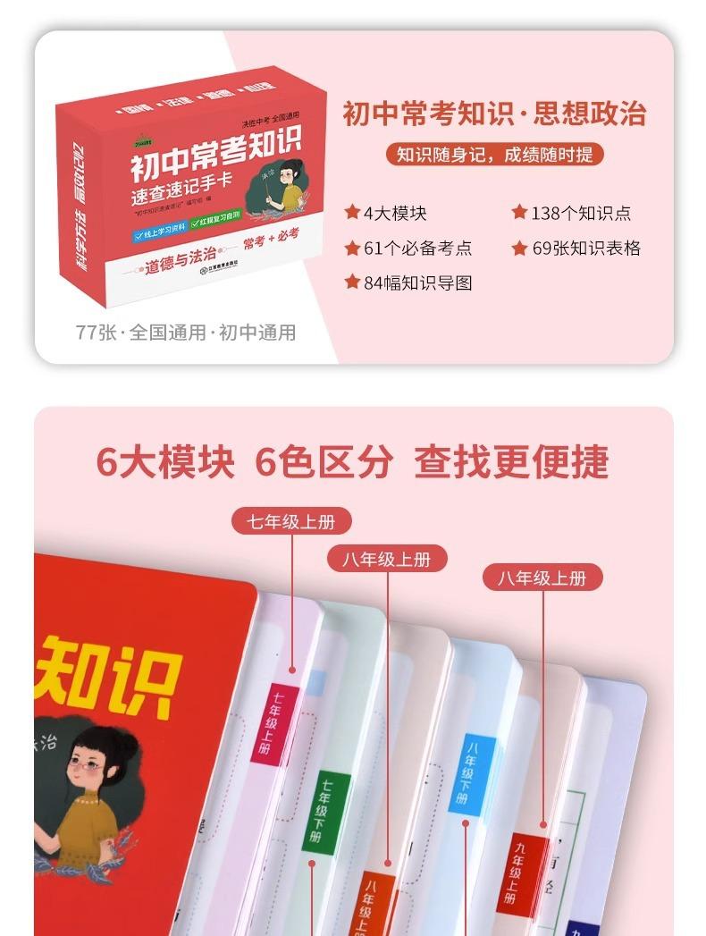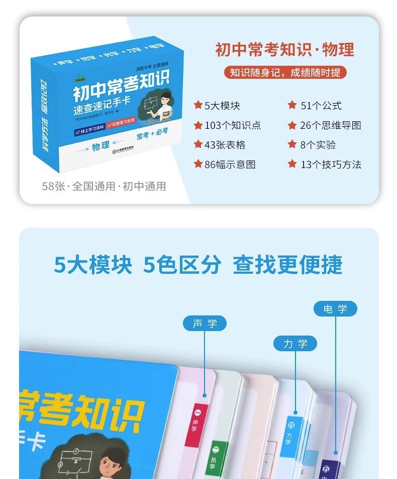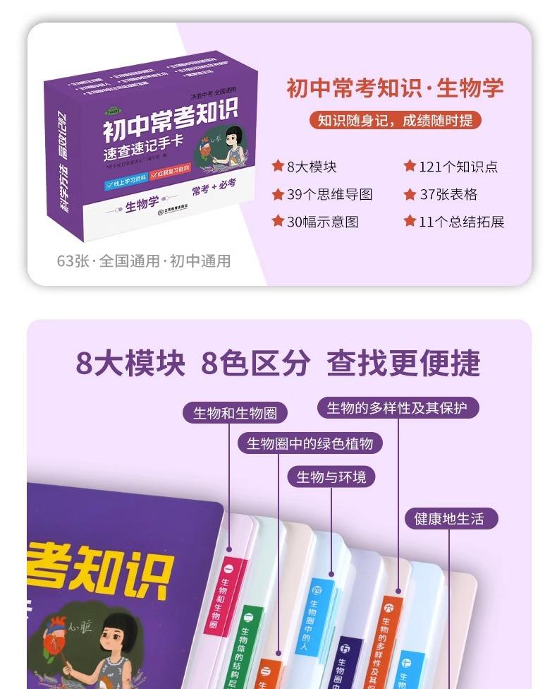 Tarjetas de taquigrafía de conocimiento para examen de secundaria Matemáticas chinas Inglés Física Química Biología Tarjetas de puntos de prueba Pantalones con bolsillo de solapa Libro