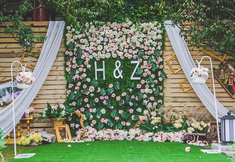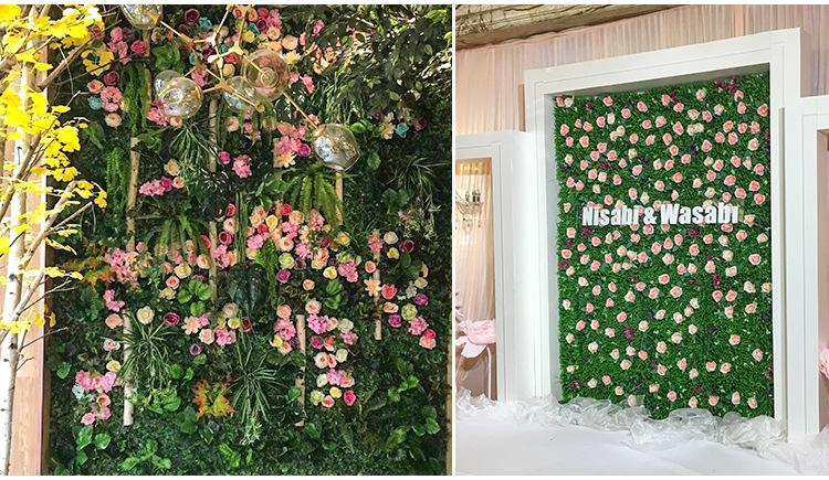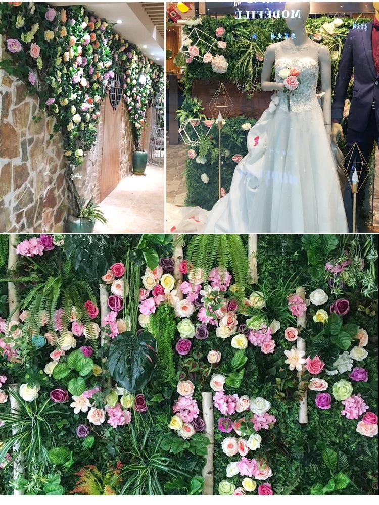 Accesorios de Pared de Plantas Simuladas Pared de Plantas Verdes con Césped Pared de Fondo Decorativa Rosa Grande Rosa Pequeña Peonía Hortensia