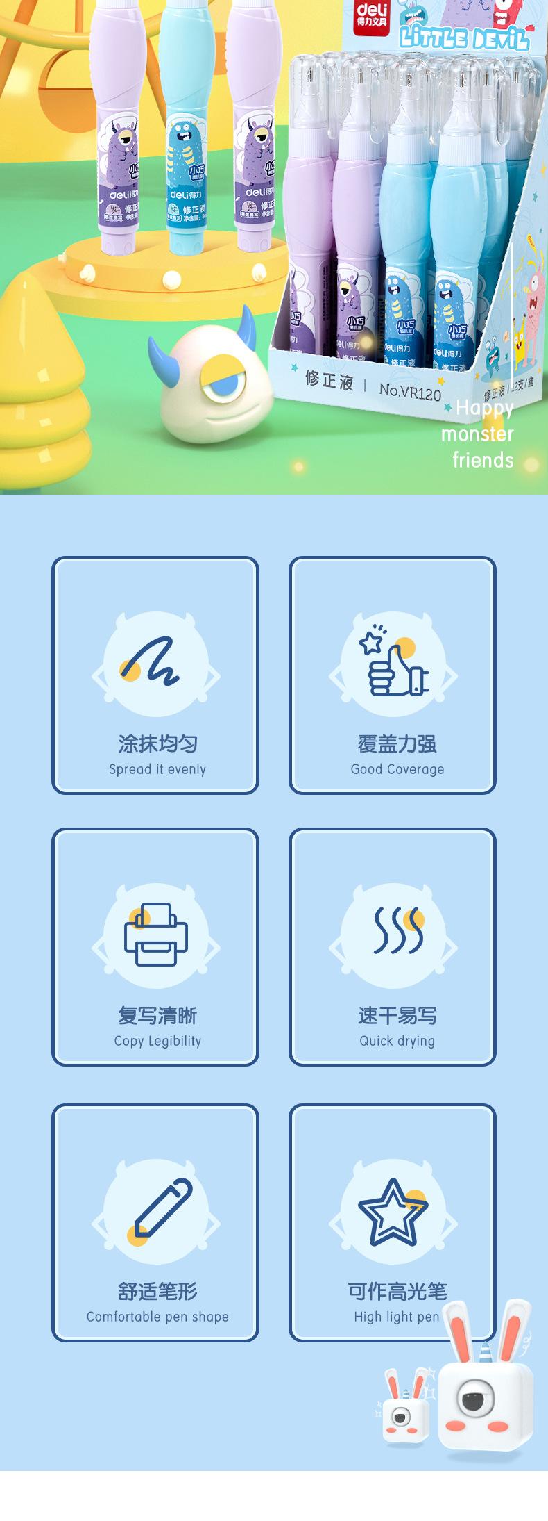Deli VR120 pequeño hambriento mágico líquido corrector líquido corrector estudiante artefacto de corrección de errores tipográficos gran capacidad líquido corrector de secado rápido