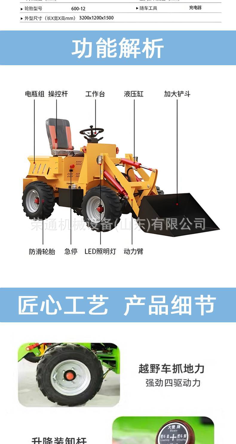 Mini carretilla elevadora eléctrica pequeña, mini carretilla elevadora doméstica con tracción en las cuatro ruedas y ruedas diésel para carga y descarga de materiales en obras de construcción.