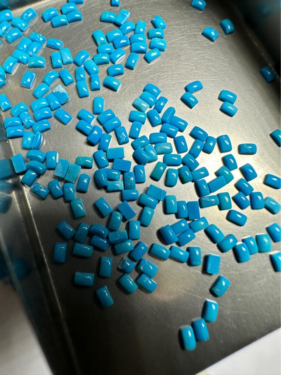 Pequeño rectángulo turquesa teñido natural de 1,5 x 2,5 mm, joyería de pino azul liso plano con piedra