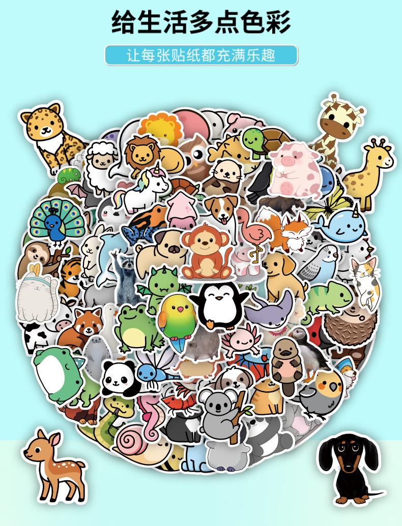 100 pegatinas de grafiti de animales pequeños de dibujos animados que no infringen derechos de autor, para equipaje, patinete, recompensa para niños, pegatinas para funda de teléfono