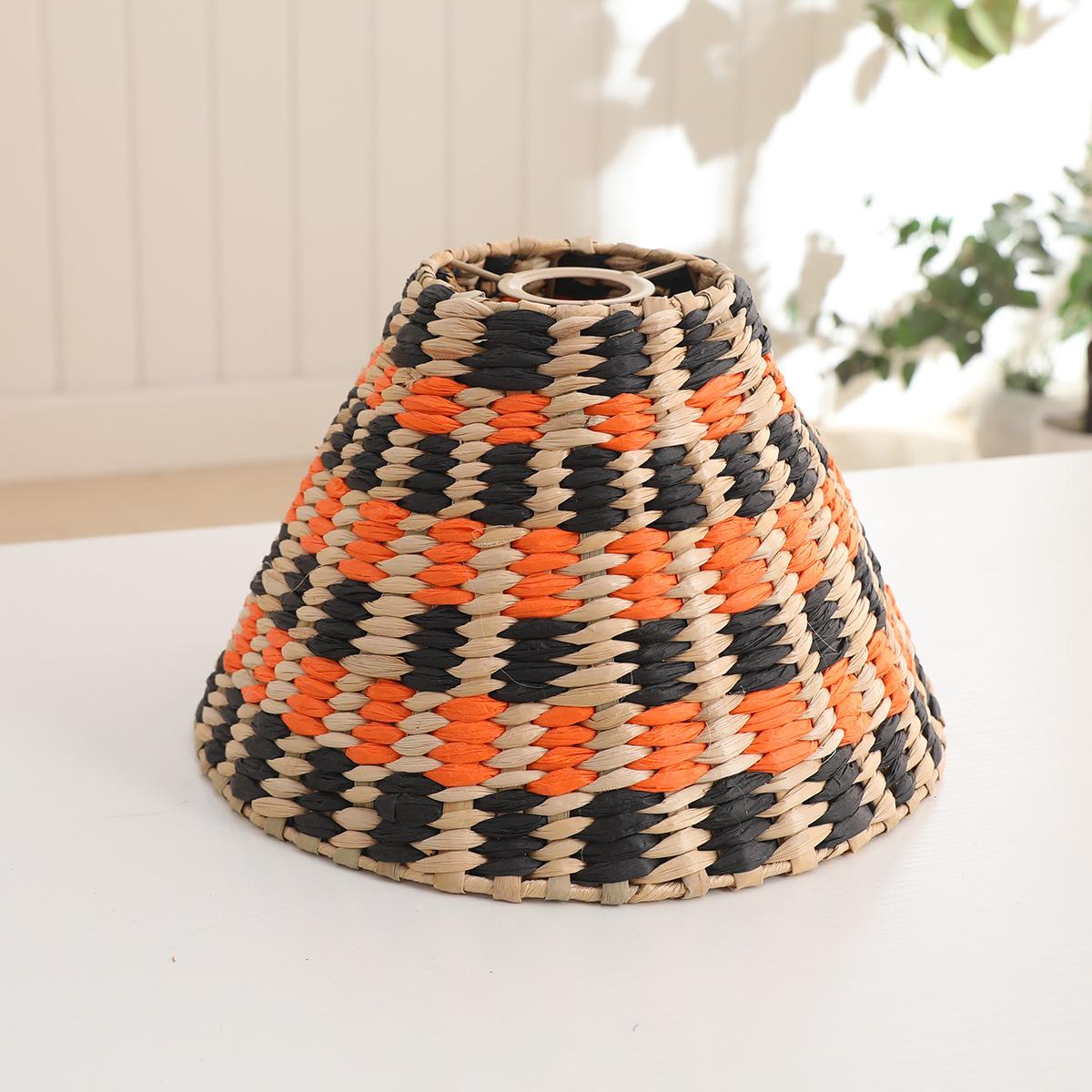 black and white flowers, black orange plain weave, Pugen Bell, Wicker lampshade upper opening 17.5* lower open...