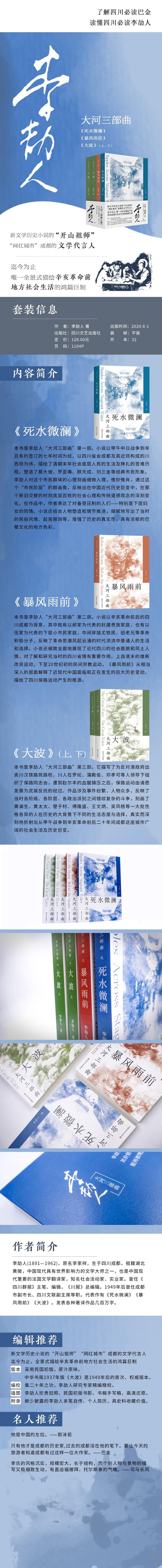 Li Jieren (1891-1962), anteriormente conocido como Li Jiaxiang, nació en Chengdu, Sichuan, y su hogar ancestral es Huangpi, Hubei. Es uno de los maestros literarios más influyentes de la China moderna, un importante traductor de la literatura francesa en la China moderna y un reconocido activista social e industrial. Fue redactor jefe y editor de "Sichuan Qunbao" y editor jefe de "Sichuan News". Después de 1949, fue teniente de alcalde de Chengdu y vicepresidente de la Federación de Círculos Literarios y Artísticos de Sichuan. Entre sus obras más representativas se encuentran "Aguas tranquilas", "Antes de la tormenta" y "Gran ola". Ha publicado millones de palabras en diversas obras escritas y traducidas.