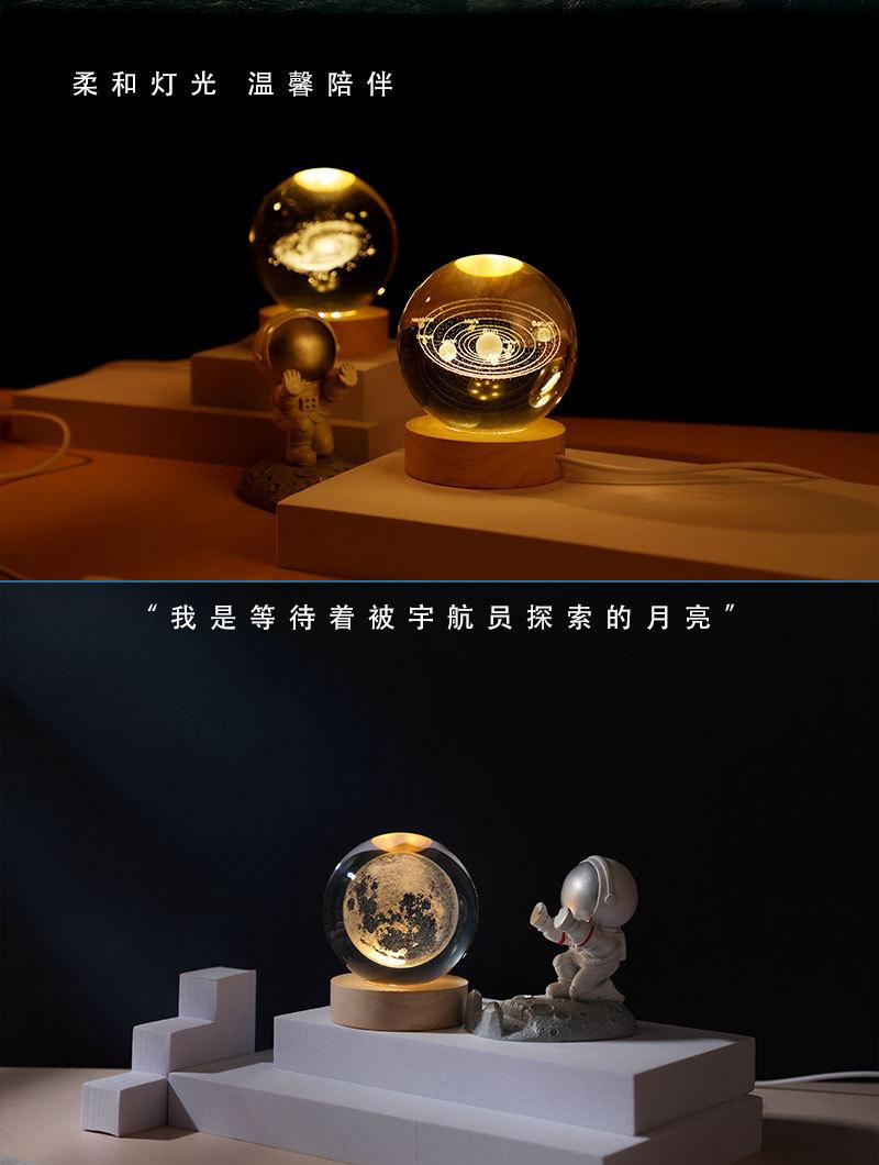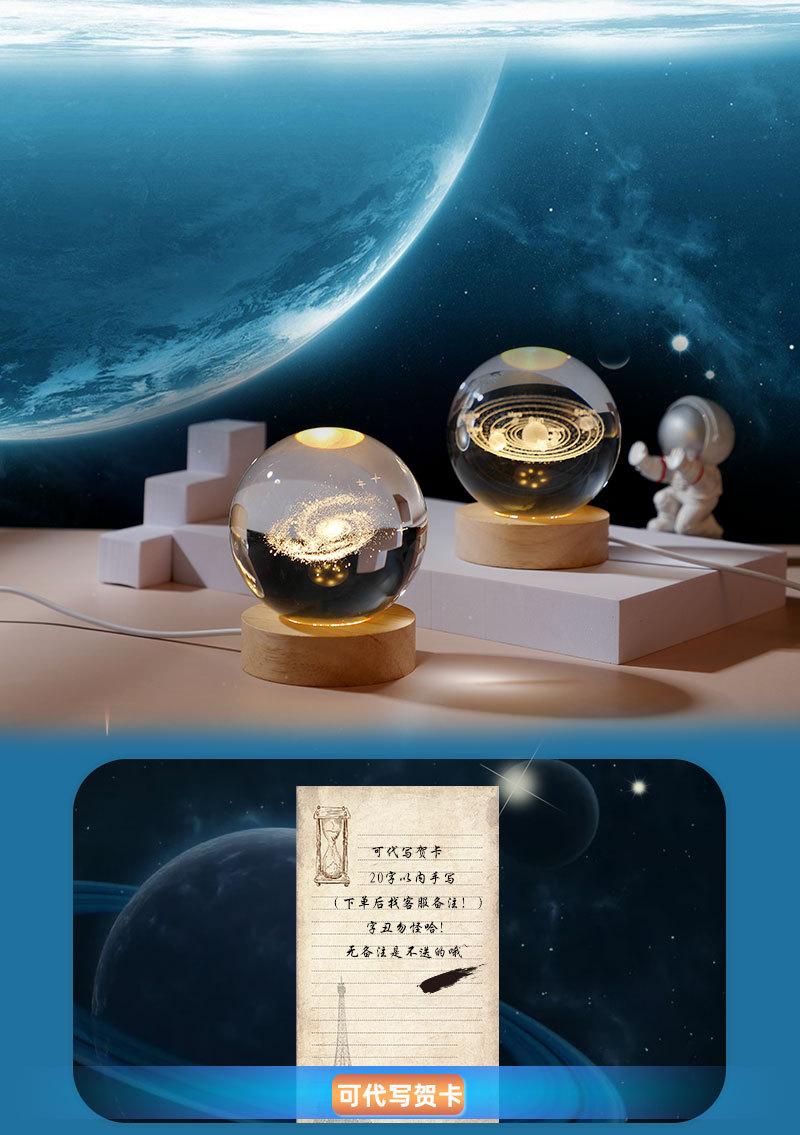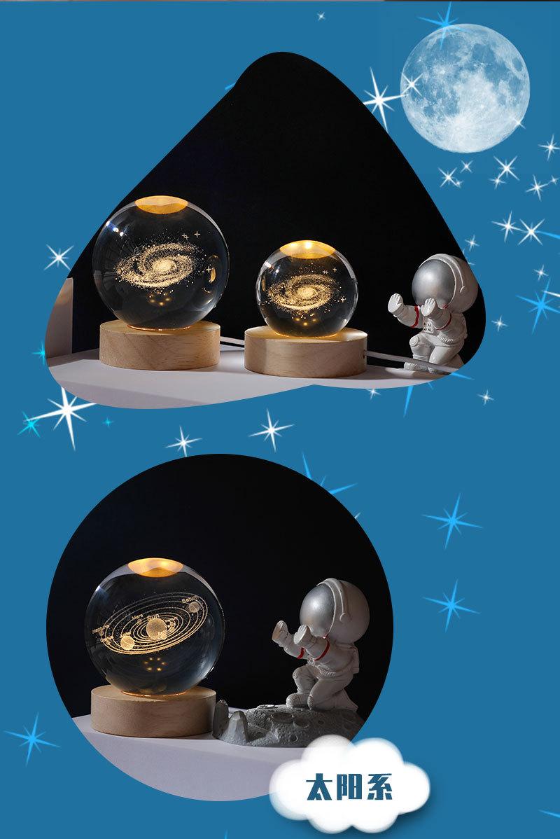 Luz Nocturna de Bola de Cristal Transfronteriza Grabado 3D Galaxia Cielo Estrellado Base Luminosa Colorida Regalo Creativo de Vacaciones Venta al por Mayor