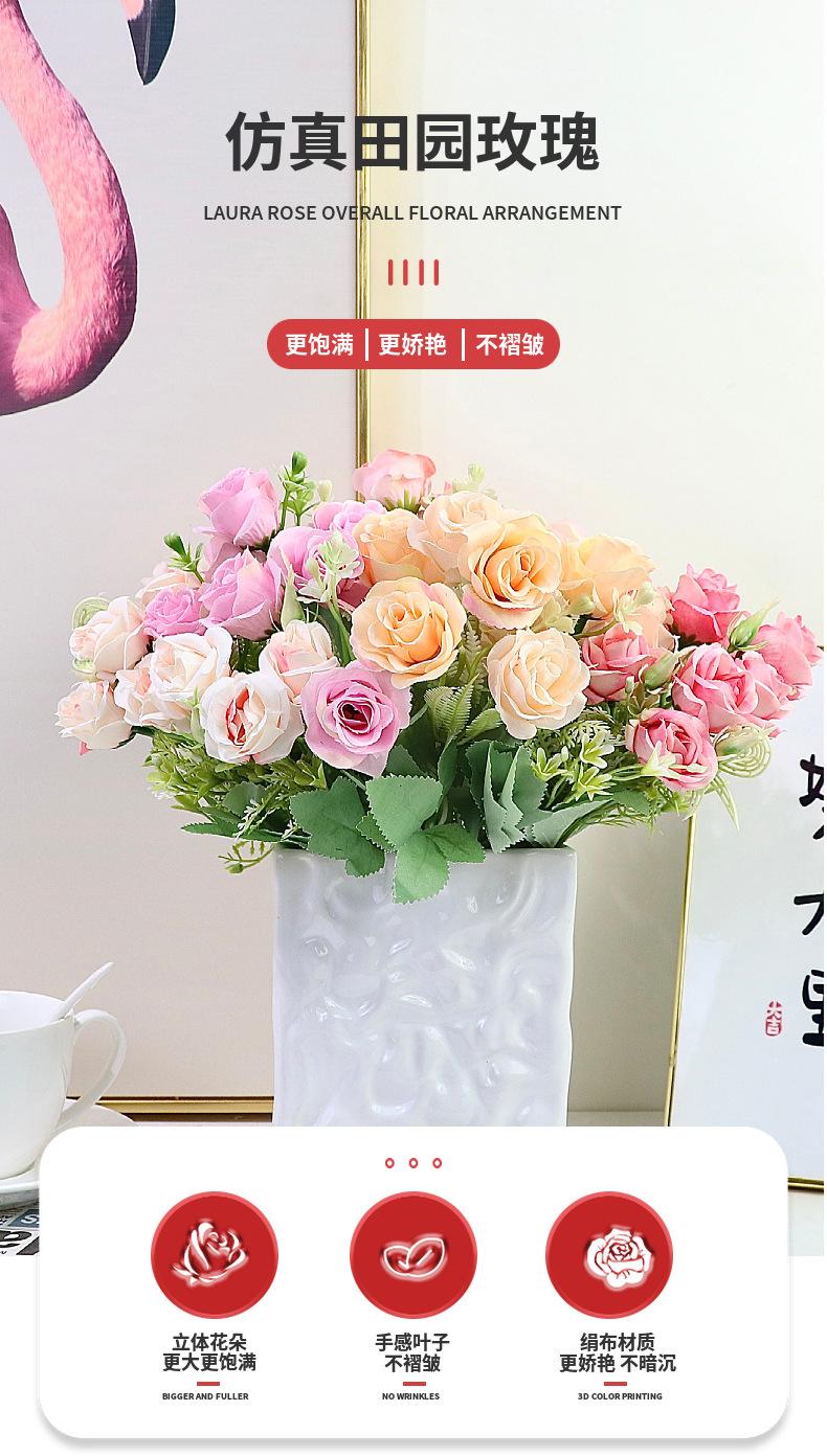 Rosa pastoral artificial, decoración del hogar, decoración de mesa de comedor, jarrón, arreglo floral, flor falsa, decoración de superficie de escritorio, venta al por mayor
