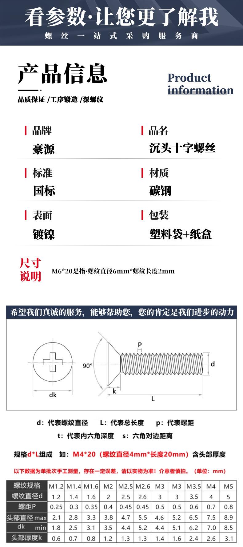 Tornillos de cabeza plana Phillips niquelados KM tornillos para muebles cabeza avellanada ranurada en cruz tornillo para máquina M1M2M3M4M5