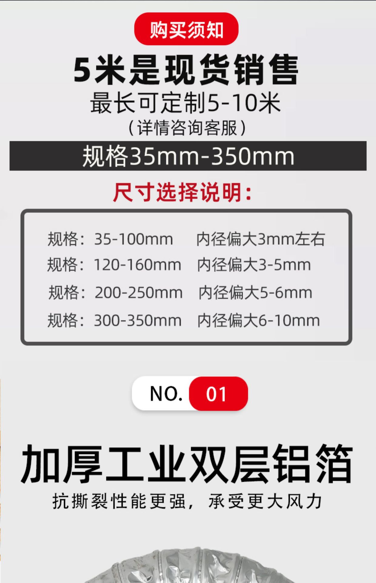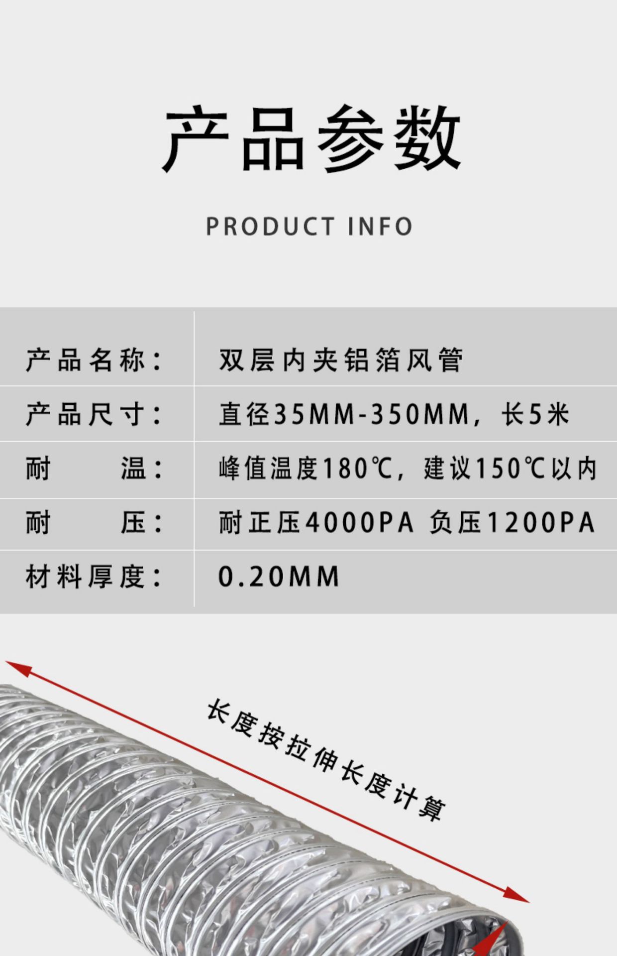 Tubo Interior de Papel de Aluminio Engrosado, Resistente a Ácidos y Álcalis, Conducto de Aire Resistente a Altas Temperaturas, Manguera Telescópica de Doble Capa de Papel de Aluminio para Maquinaria y Equipo