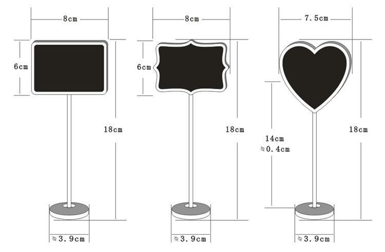 Descripción del producto: Esta pequeña pizarra es sencilla, retro y original. Se puede colocar en macetas para hacer arreglos florales y escribir mensajes. Es muy bonita. Se puede colocar directamente sobre un soporte de madera. Cada pizarra cuenta con una base para apoyarse.