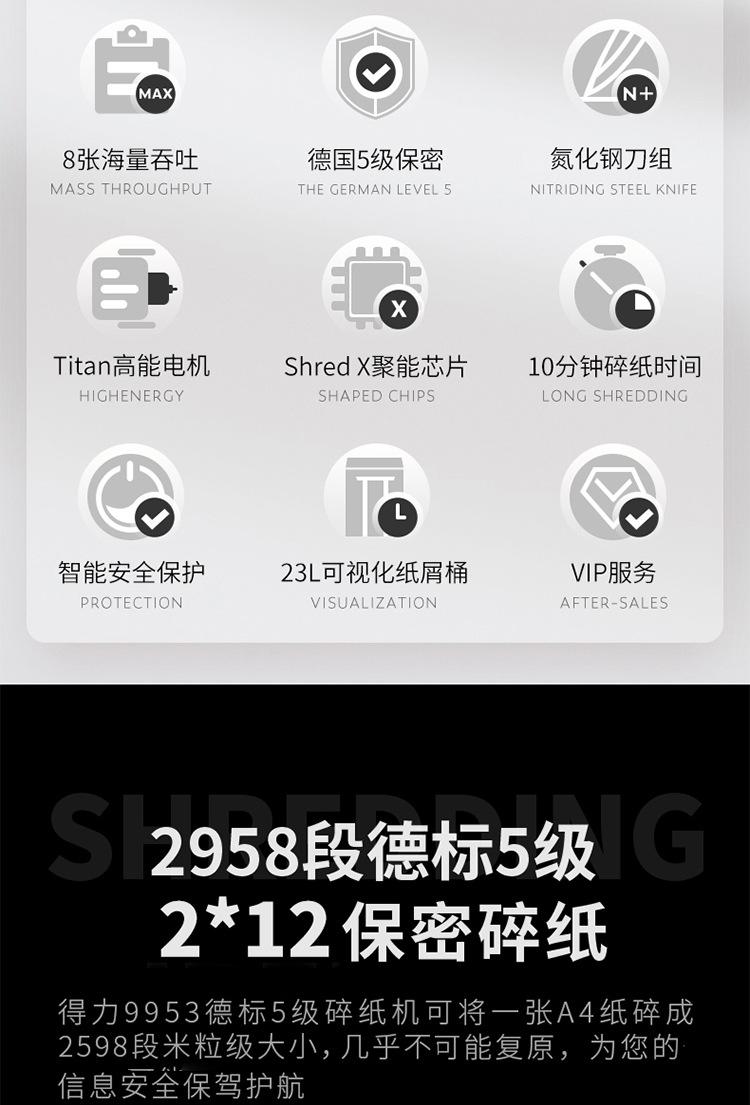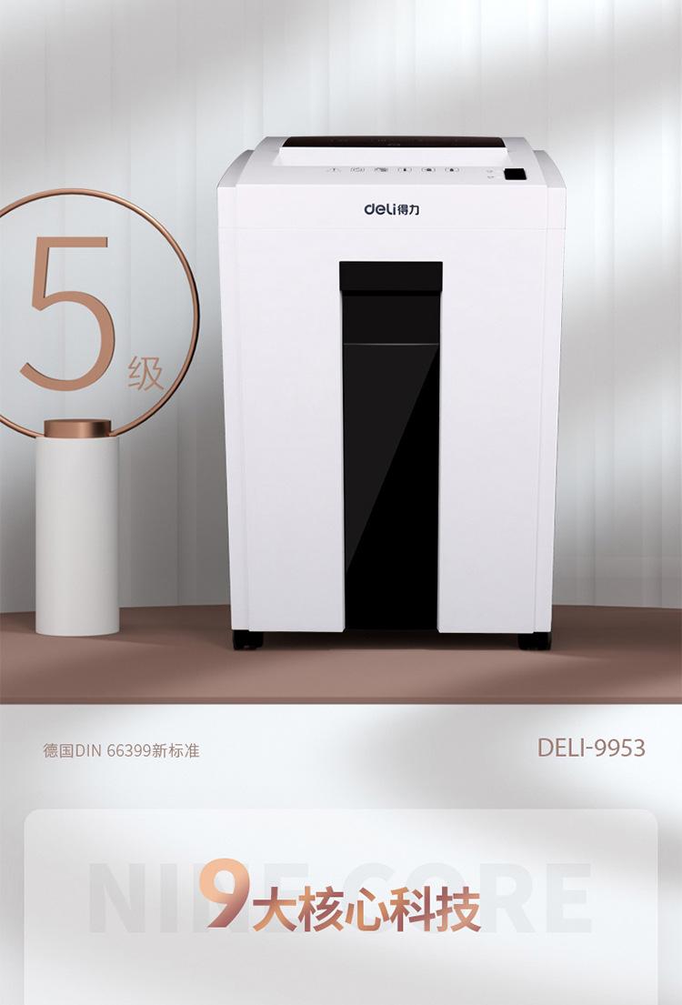 Deli 9953 Destructora Multifuncional de 5 Niveles para Documentos Confidenciales Destructora de Papel de Alta Confidencialidad para Oficina de Alta Potencia