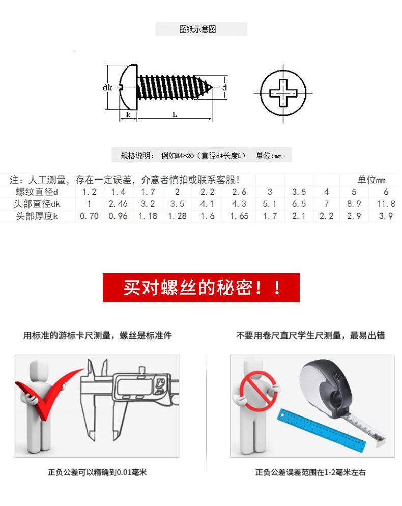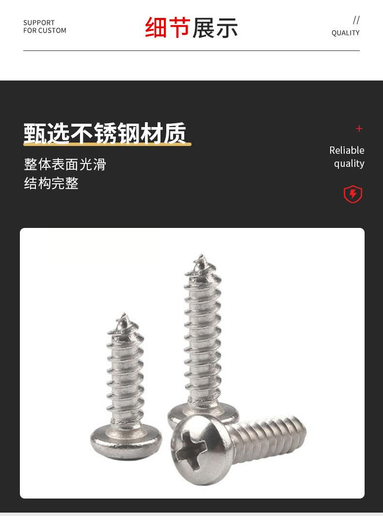 Lote de fabricantes de tornillos autorroscantes de cabeza redonda de acero inoxidable 304 de cabeza de sartén cruz autorroscantes semicírculo cruz autorroscantes tornillos para muebles
