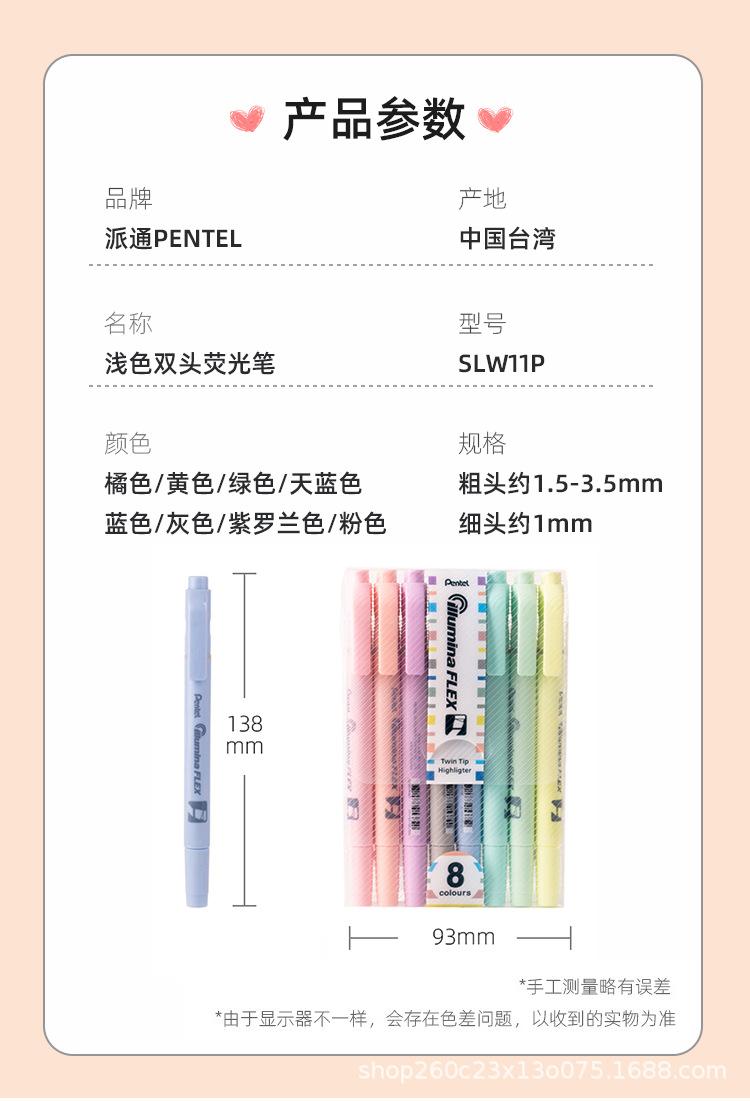 Marcador de agua Pentel SLW11P de doble cabezal, color macarrón
