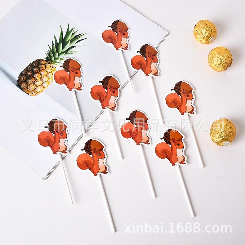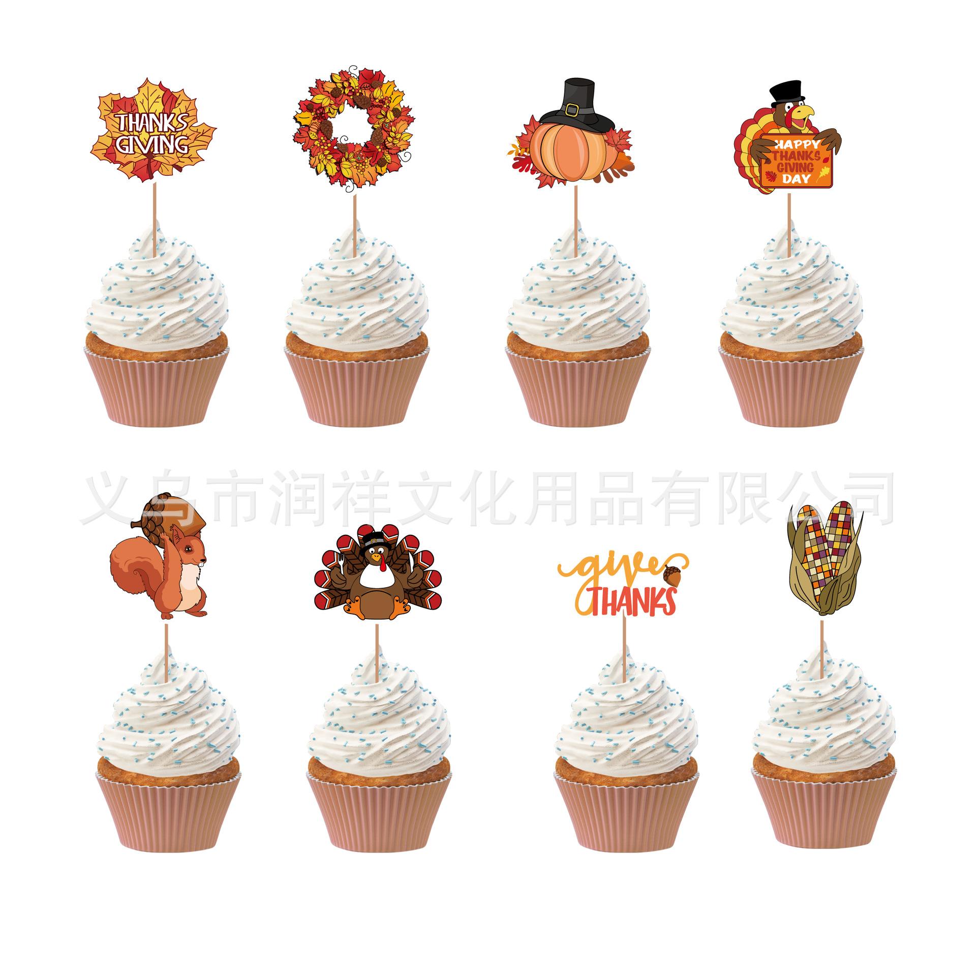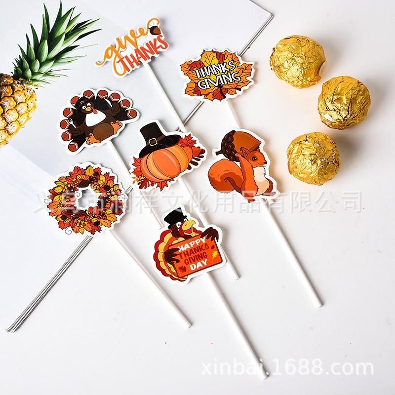 Tarjeta de pastel de Acción de Gracias de otoño caliente con enchufe para fiesta de cumpleaños de calabaza, pavo y ardilla