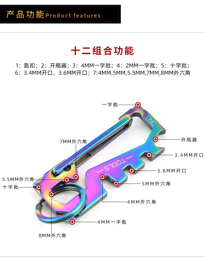 Nota especial:El abridor de botellas del llavero tiene una apertura máxima de 7 mm debido a la ubicación del producto (el ancho de la tapa que se abre a la vez es de aproximadamente 13 mm). Debido al principio de palanca, el ancho de 7 mm no es suficiente para abrir la tapa a la vez, por lo que se requieren más de dos intentos para abrirla. Nota: